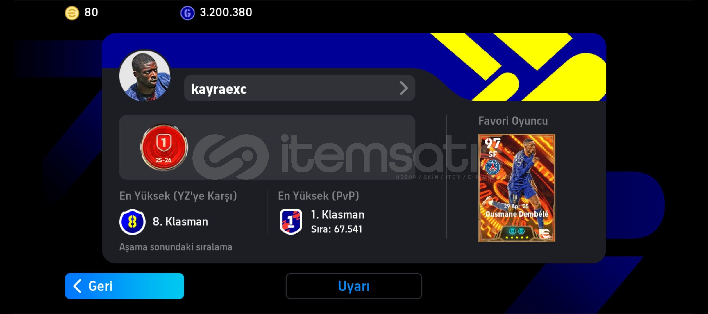 hesap göründüğü gibi dopdolu.4 tane bombacısı vardır (son doue olise Burak)hücum severler için bu hesap kaçmaz 😍😍