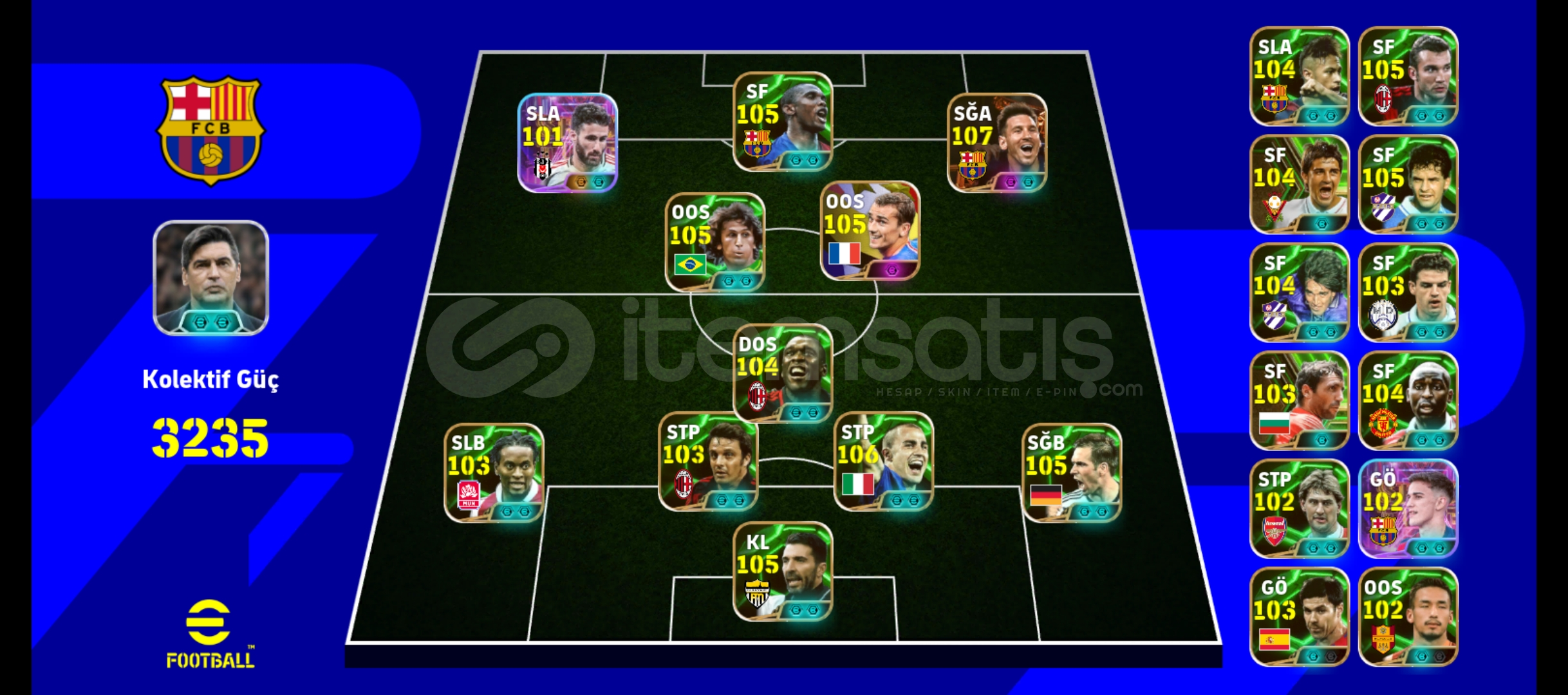 İLK 11:Kaleci (KL): Gianluigi Buffon – ⭐ 105Stoper (STP): Franco Baresi – ⭐ 103Stoper (STP): Alessandro Nesta – ⭐ 106Sol Bek (SLB): Alphonso Davies – ⭐ 103Sağ Bek (SGB): Philipp Lahm – ⭐ 105Defansif Ortasaha (DOS): Patrick Vieira – ⭐ 104Orta Saha (OOS): zico - bonbaci – ⭐ 105Orta Saha (OOS): Antoine Griezmann – ⭐ 105Sol Forvet (SLA) : rafa silva bombacı – ⭐ 101Santr...