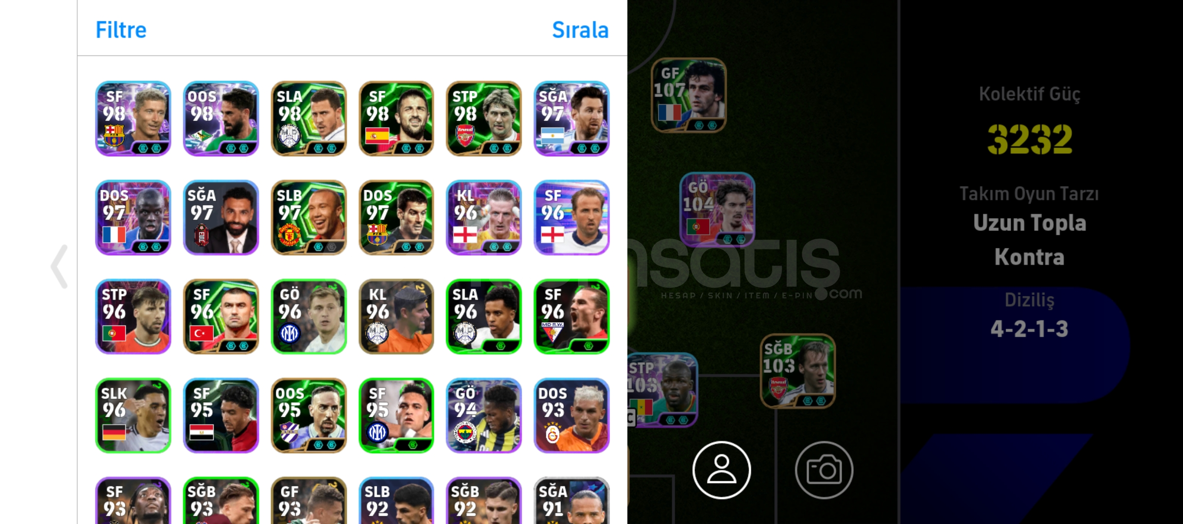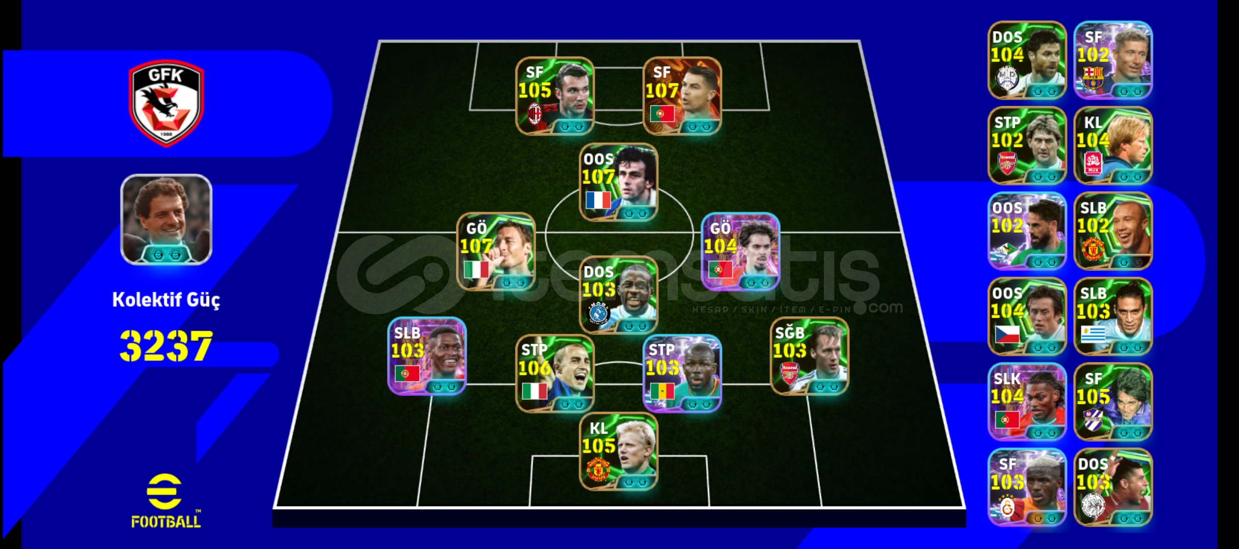 Hesapta Shevchenko, Platini, Schmeichel, Yaya Toure, Ronaldo, Rafa Silva, Leao vs. Çok iyi meta oyuncular var.İçinde efootball parası yoktur.Hesap ölü bağdır.