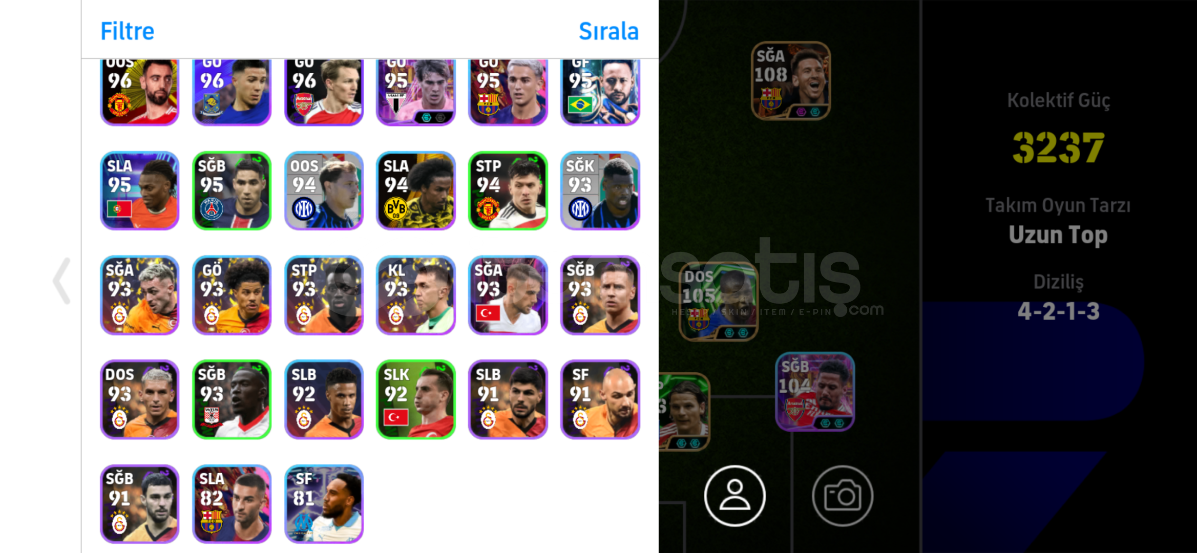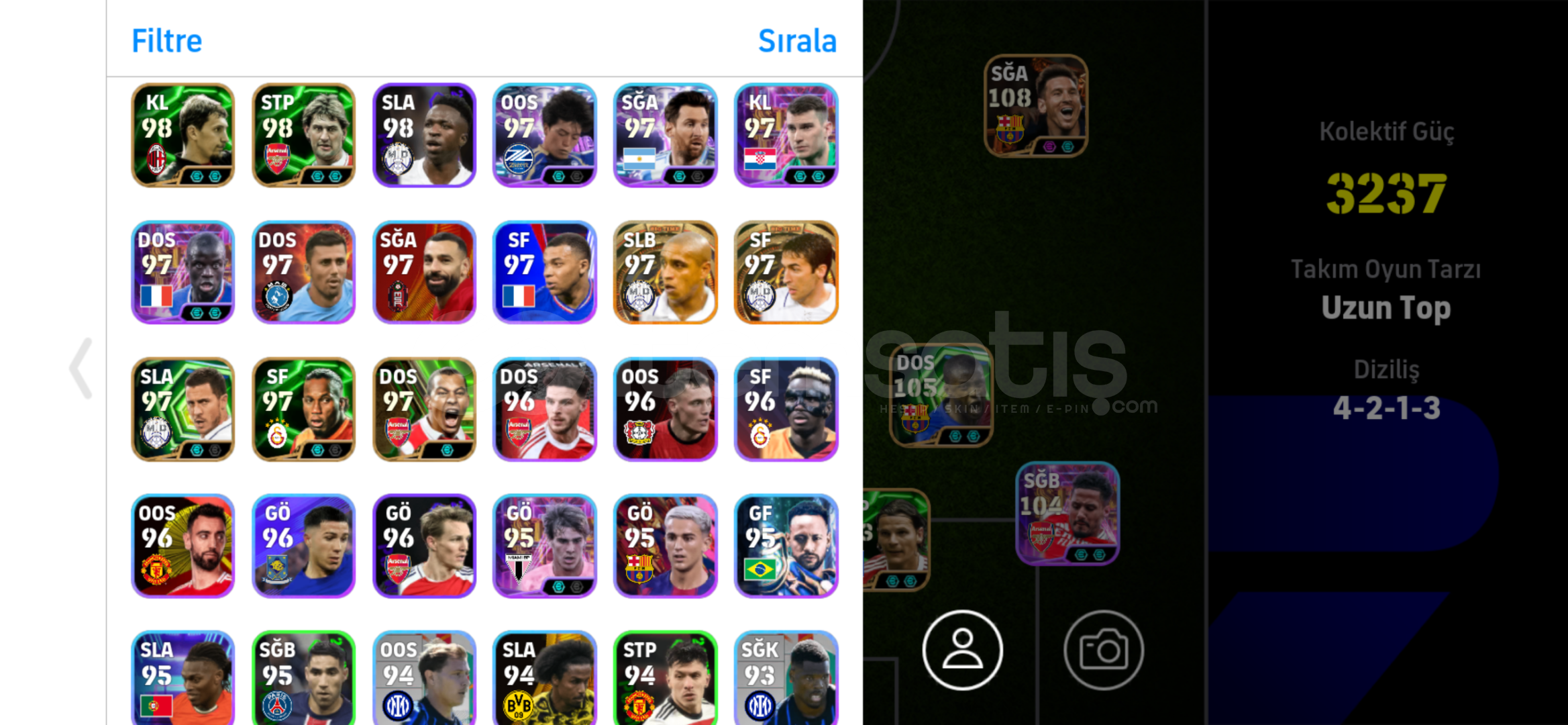 Hesap gayet dokudur içerisinde 4 adet bombacı (MSN) ve bir çok güzel icon bulunmaktadır içinde 5 özel menajer bulunmaktadır fiyatta inidirim yoktur konami id tek baglı hesap