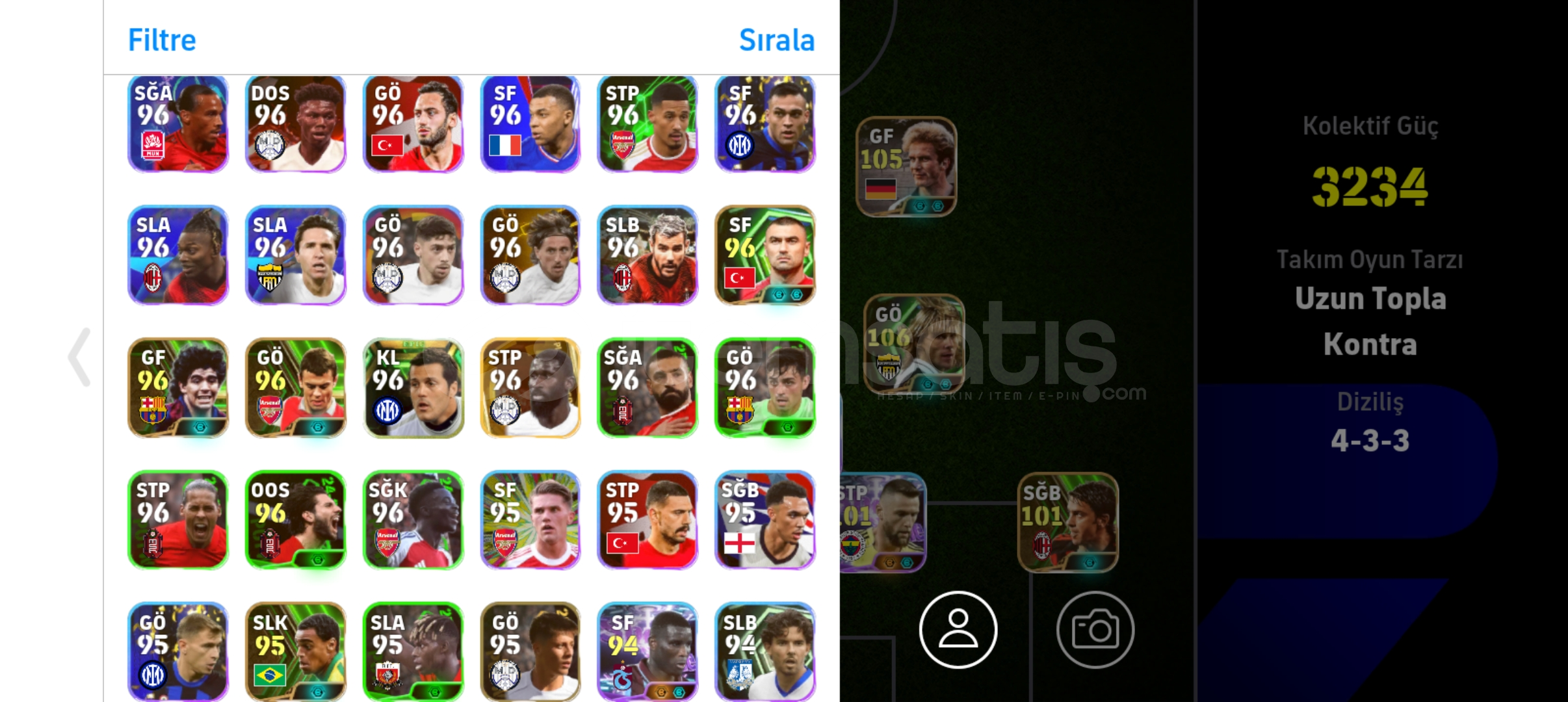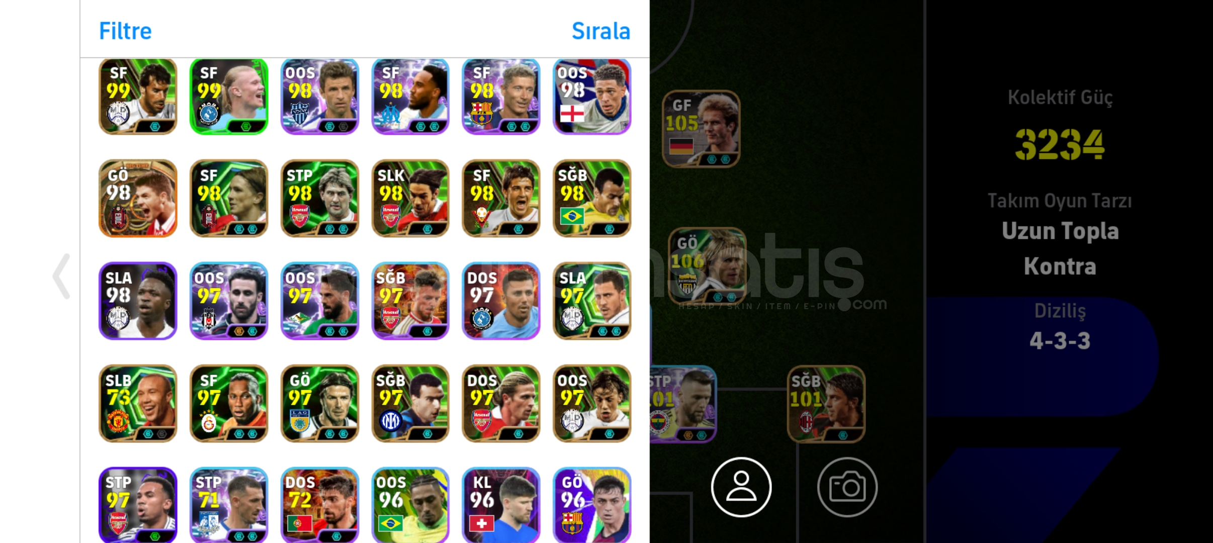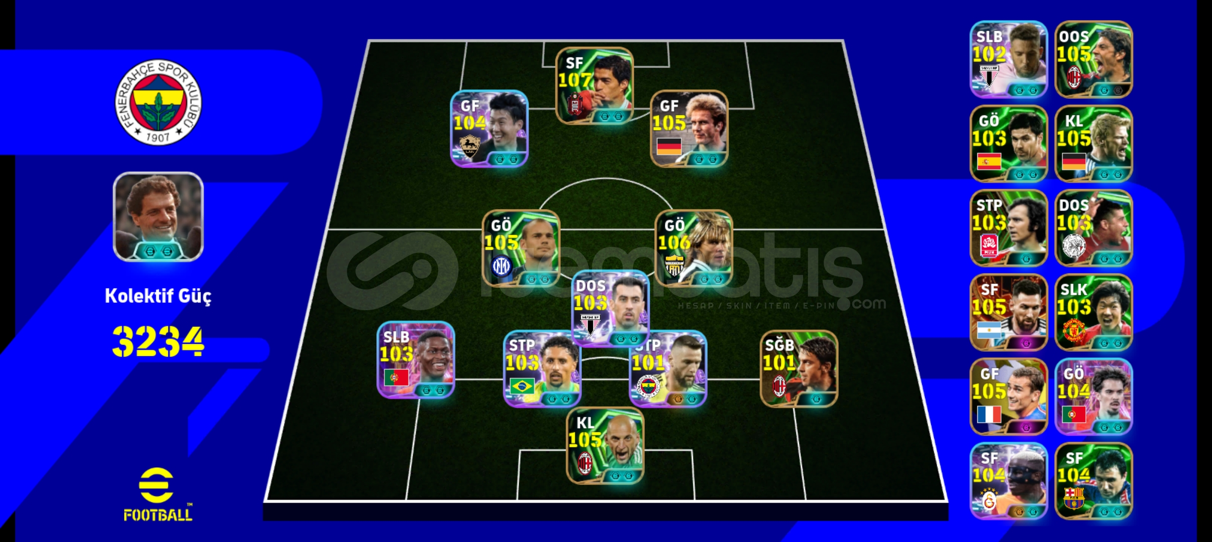 Hesap tek bağ 108 Suarez 106 nedved 105 rummenige yeni bombacı son epik kaleciler ve bir çok epik Türkiye Show timleri vardır alıcısına simdiden hayırlı olsun