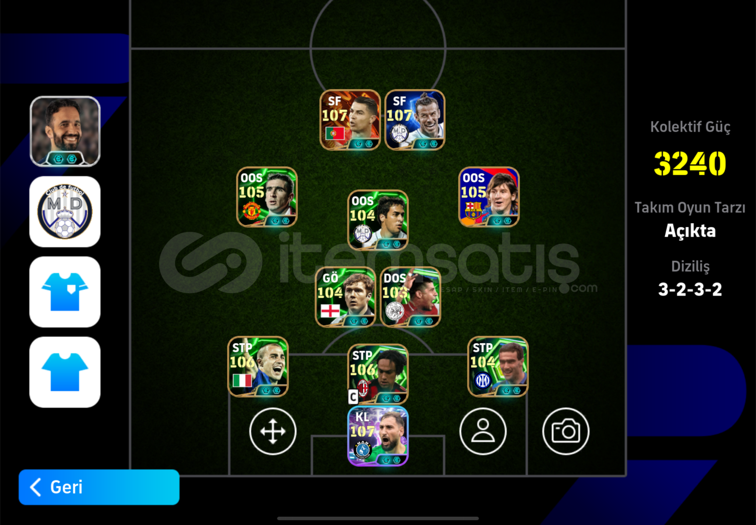✅Tek Bağ KONAMI ID🔥107 Ronaldo🔥107 Bale🔥107 Donnarumma 🔥106 Nesta🔥Efsane Forvet Hattı🔥Duvar Gibi Defans Hattı🔥Muazzam İki Kaleci(Donnarumma,Dida)🔥Oldukça Uygun Fiyatlı🔥Yeni Alıcısına Anında Teslim Edilir