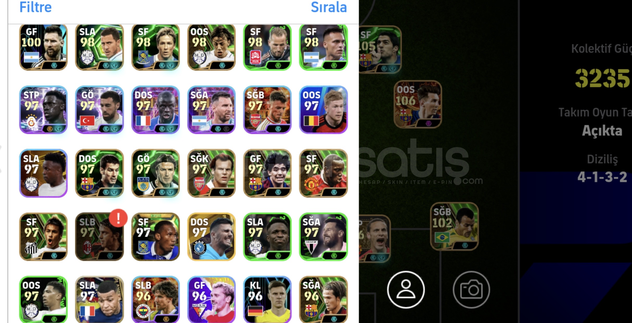 3 BOMBACILITek bağ 3240KG (KONAMI ID) efsane hesap!E posta değişir!Güçlendiriciler ayarlandıktan sonra 3245+kg olur! Bol bol Epic, Showtimes, özel menajarler ve sağlam kartlar mevcut!104 BERGKAMP(BOMBACI)💣104 ULİ HOENEB(BOMBACI)💣101 BURAK YILMAZ(BOMBACI)💣107 DONNARUMA(OYUNUN EN İYİ KALECİSİ)107 MESSİ(OYUNUN EN İYİ MESSİ KARTI)107 FERDİNAND(EN İYİ İKİ...