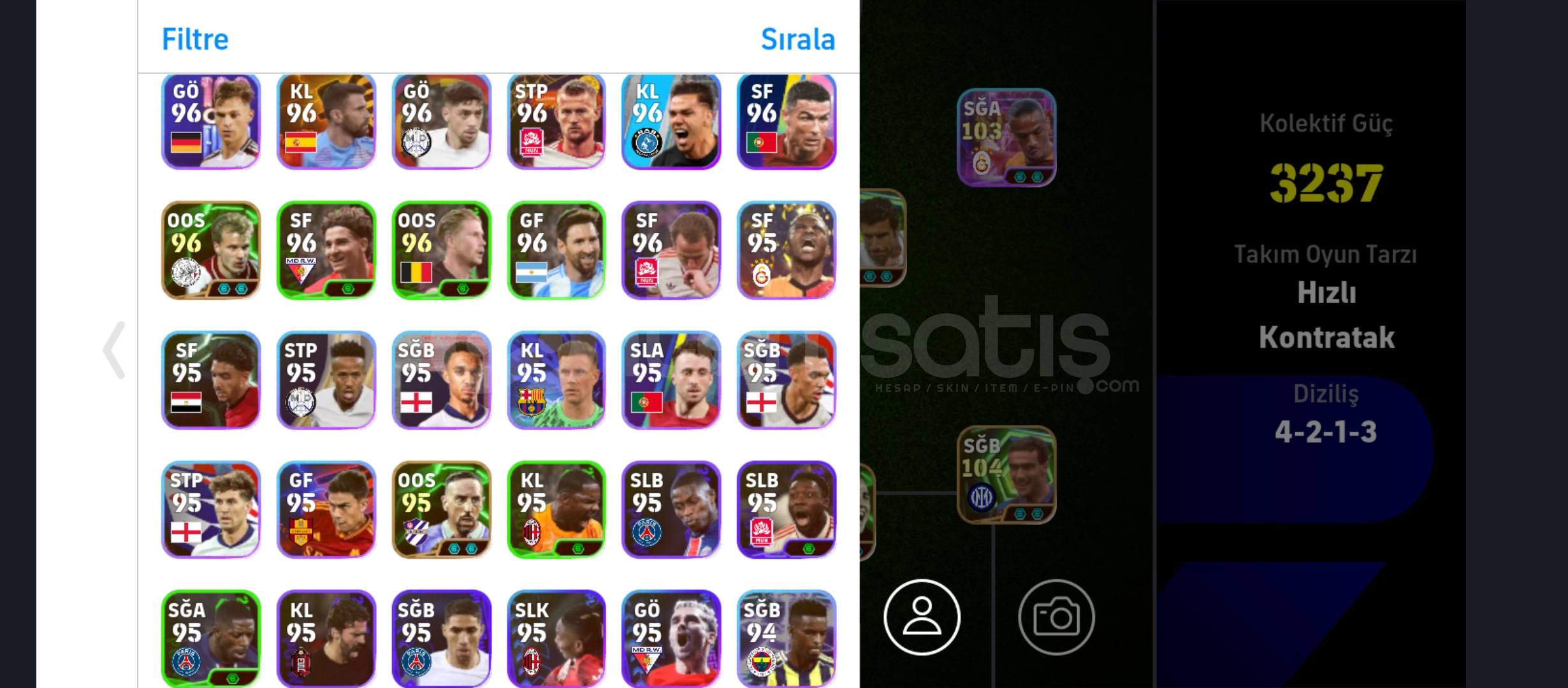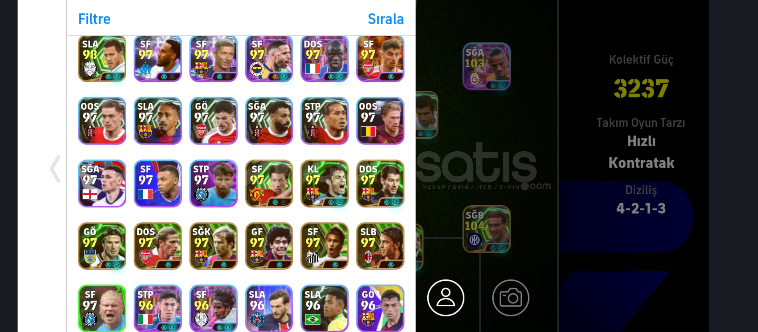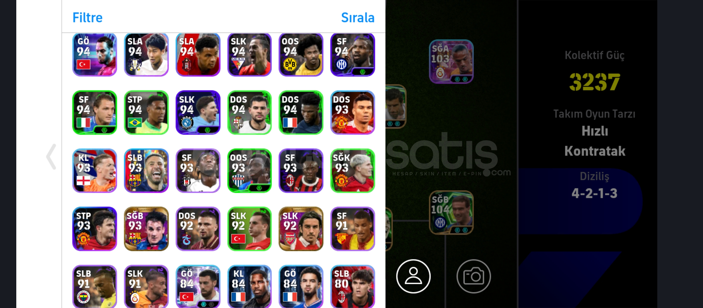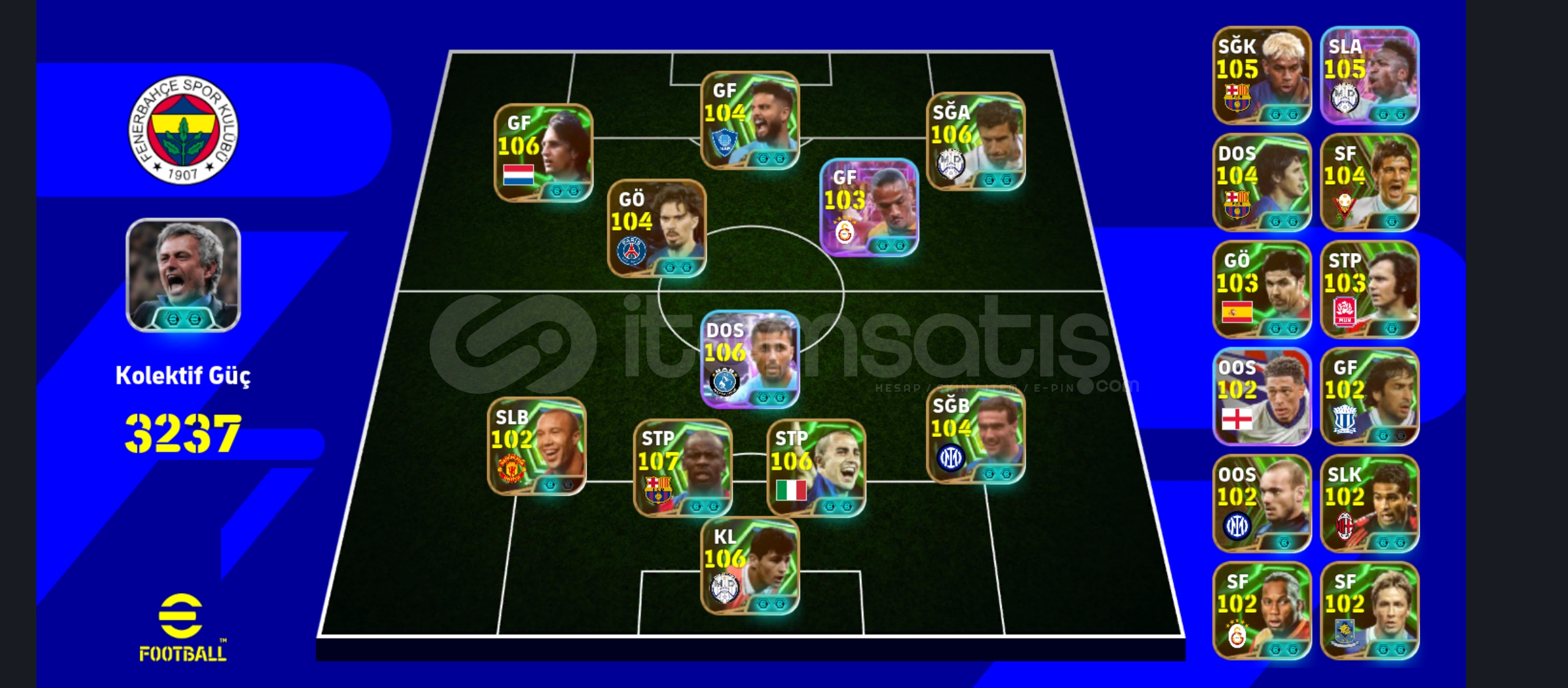 1. KLASMAN2 BOMBACILITek bağ 3240KG (KONAMI ID) efsane hesap!E posta değişir!Güçlendiriciler ayarlandıktan sonra 3240+kg olur! Bol bol Epic, Showtimes, özel menajarler ve sağlam kartlar mevcut!108 THURAM103 SANE (BOMBACİ)💣105 İNSİGNE (BOMBACİ)💣106 LUİS FİGO106 CANNAVARO106 RODRİ106 JOHAN CRUYFF106 CASİLLAS(OYUNUN EN İYİ KALECİSİ)105 VİNİCİUS JR...