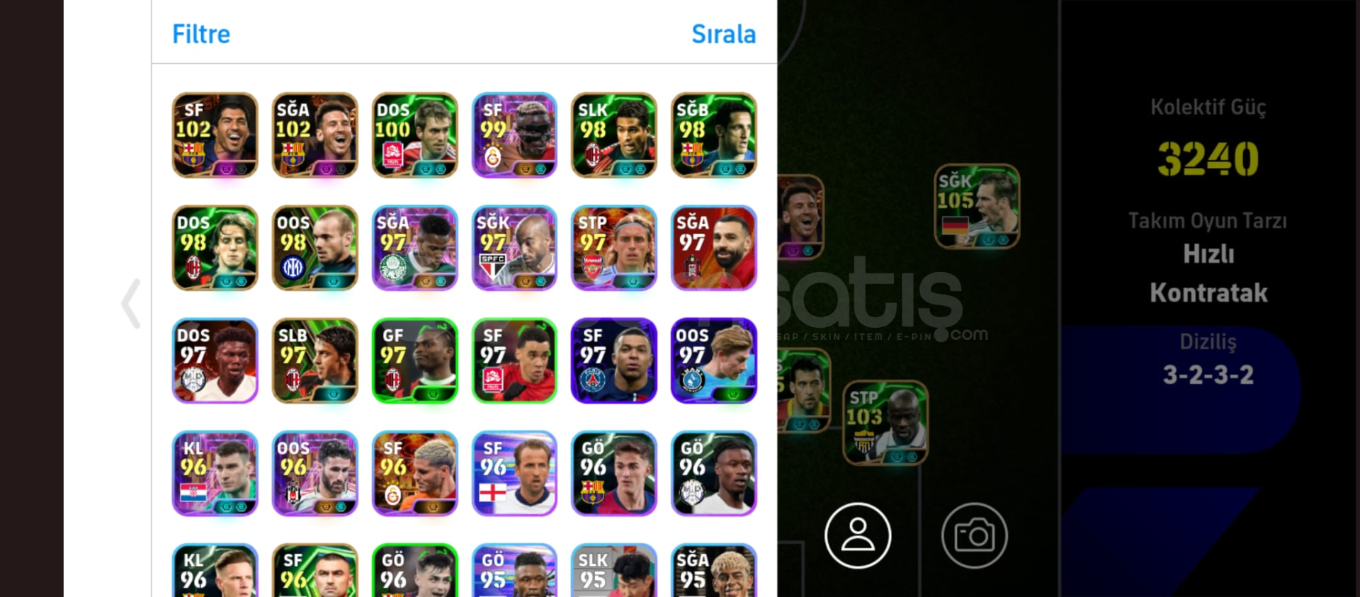 hesap şanslıdır 2 messi ve 2 suarez çıkarılımıştır hesabı almanızı öneririm4 tane bombacı vardır Burak yılmazdavid villamessirafa silva