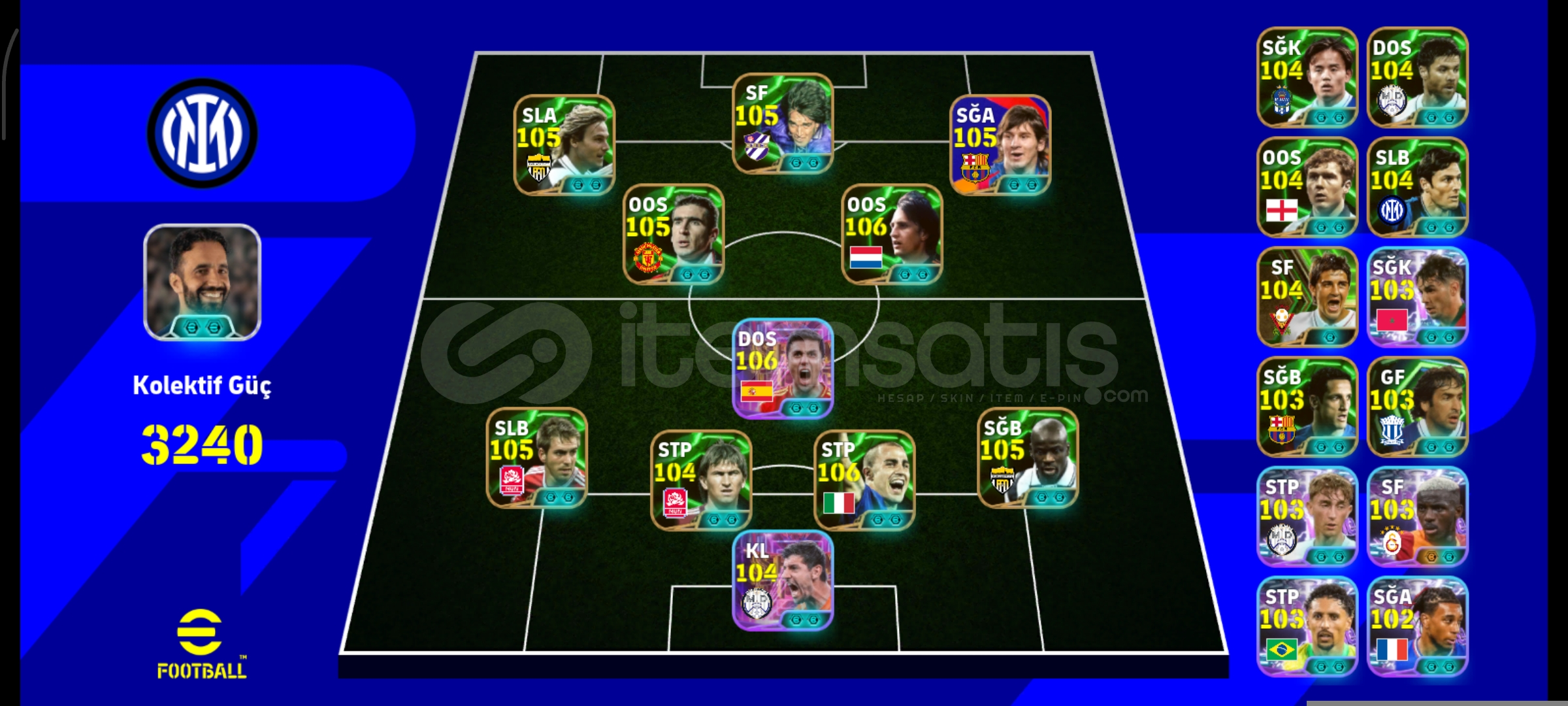 ⭐3240KG HESABİMİZ MAİNLİKTİR⭐⭐15PARALI EPİC 4MENAJER REZERV HARİKA⭐⭐106RODRİ 106CRUYFF 105MESSİ 105NEDVED 105CANTONA 105THURAM 105LAHM 105BATİSTUTA 104KLAUS 104ALONSO 104COURTOİS İNANILMAZ EPİCLER⭐⭐ÇİFT GÜÇLENDİRİCİ 4MENAJER⭐⭐TEK BAĞDIR KONAMİ İD EPOSTA DEVREDİLİR⭐
