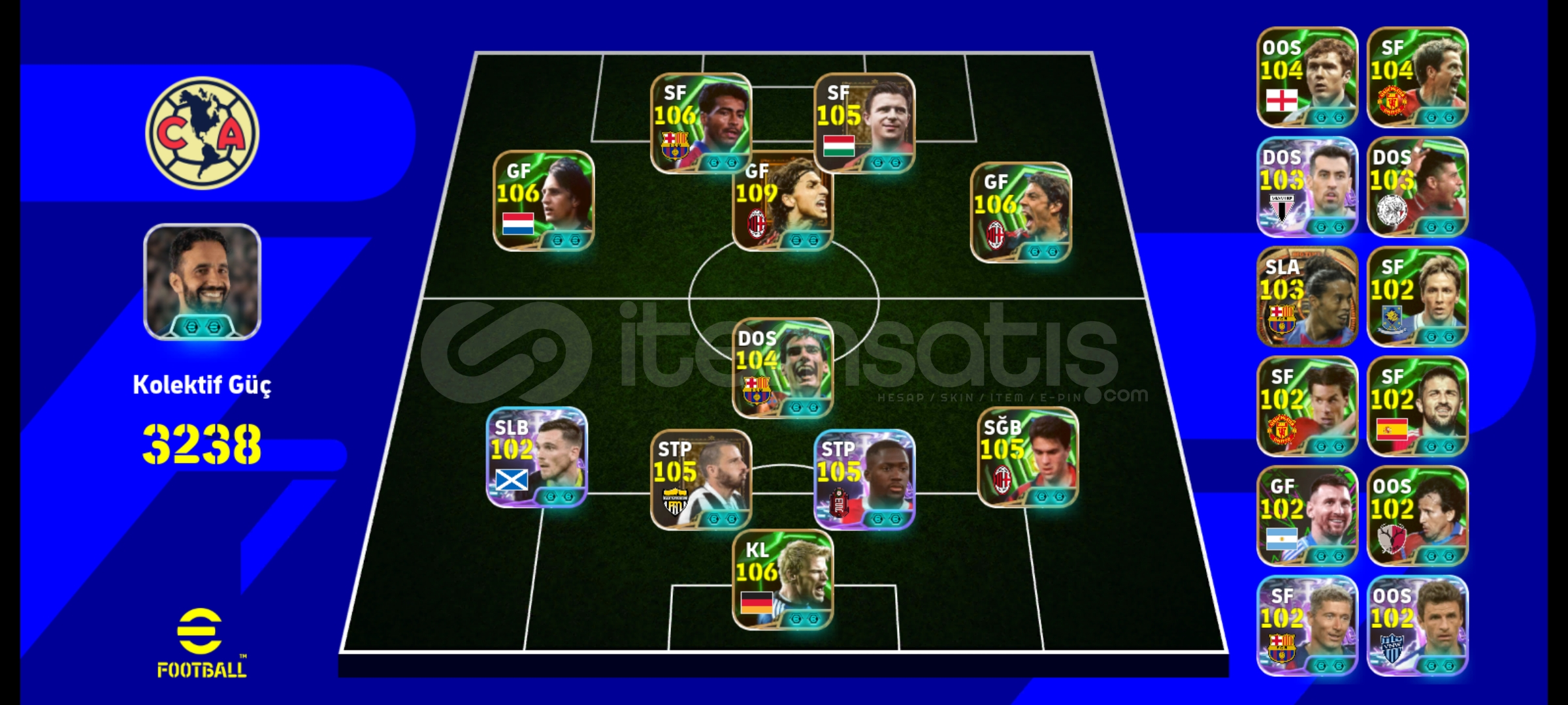 3240KG HESABİMİZ TEKLİF İLANIDIR.SATIN ALMAYIN. TEKLİFLERİNİZİ BEKLİYORUZ. 12PARALI KART DOLU REZERV 6MENAJER109İBRAHİMOVİC 106CRUYFF 106ROMARİO 106PUSKAS 106KAHN 106RUİ COSTA 105COSTACURTA 105KONATE 105BONUCCİÇİFT GÜÇLENDİRİCİ AMORİM MOU BECKENTEK BAĞDIR EPOSTANIZA DEVREDİLİRALICISINA HAYIRLI OLSUNPAZARLİK OLUR PAZARLİK SÜNNETTİR