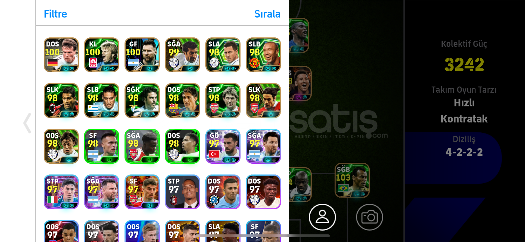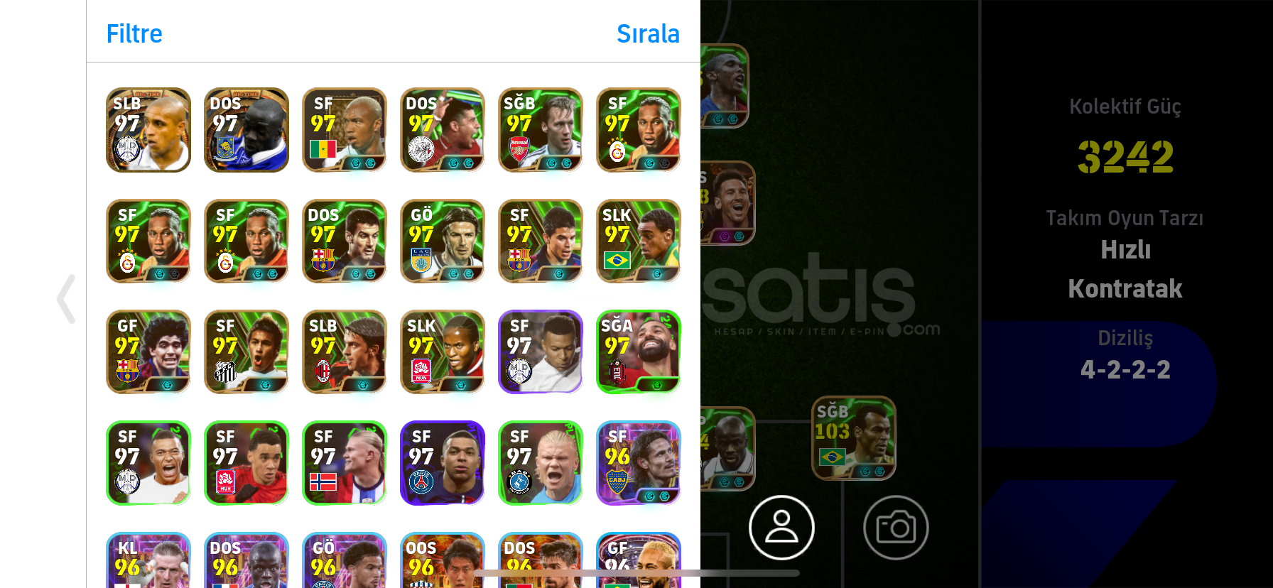 Hesap tek bağ ve eksi mc yoktur. Oyunun en iyisi denebilecek oyuncular mevcuttur. Hücum defans orta saha hattı +105 oyuncular vardır .Suanda etkinlikteki kahn ve fiore çıkarılmıstır. Girş hakkı yok hesabın . Ayın 1’inde de devredebilirim isterseniz. Cüzzi pazarlık vardır çok düşmem. Alıcısına hayırlı olsun şimdiden.