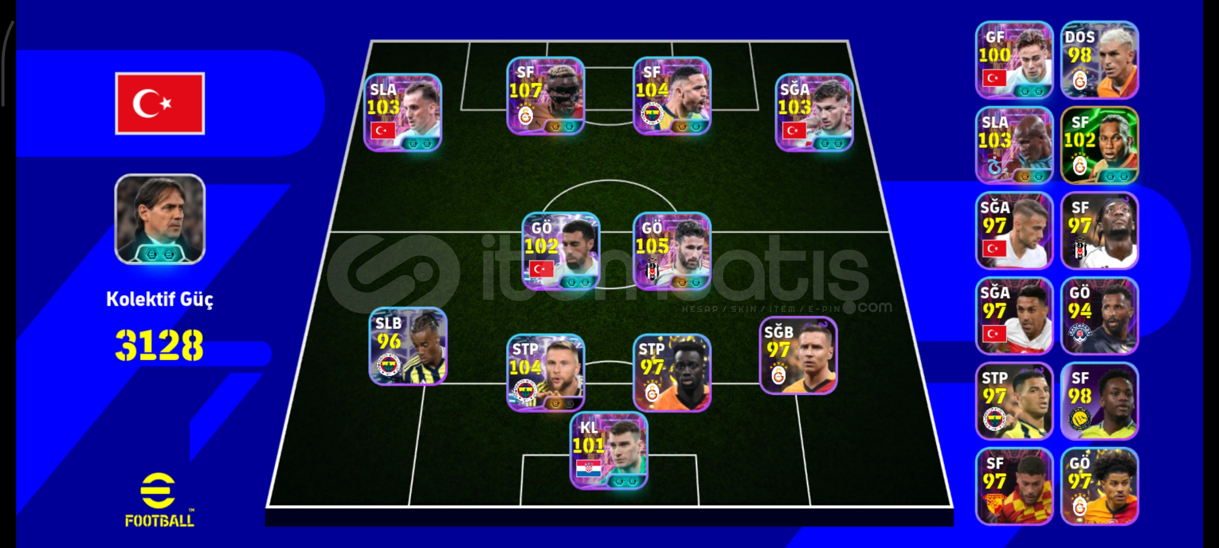 3242 Kolektif Güç105 Van Basten105 Isak (ağ delen kafa)105 Rivaldo105 İniesta105 Platini105 Figo103 Beckham103 Chiellini106 Rio Ferdinand106 Canavaro106 Donnaruma104 Fletcher104 Cunha (bomba şut)Süperlig Showtime107 Osimhen106 Osimhen104 Nesyri (ağ delen kafa)105 Rafa Silva (bomba şut)103 Kerem (bomba şut)103 Semih kılıçsoy104 Skriniar103 Nwakaeme102 Orkun kökçü101 livakovic100 Kenan yıldız103 Sane+7 Adet ...