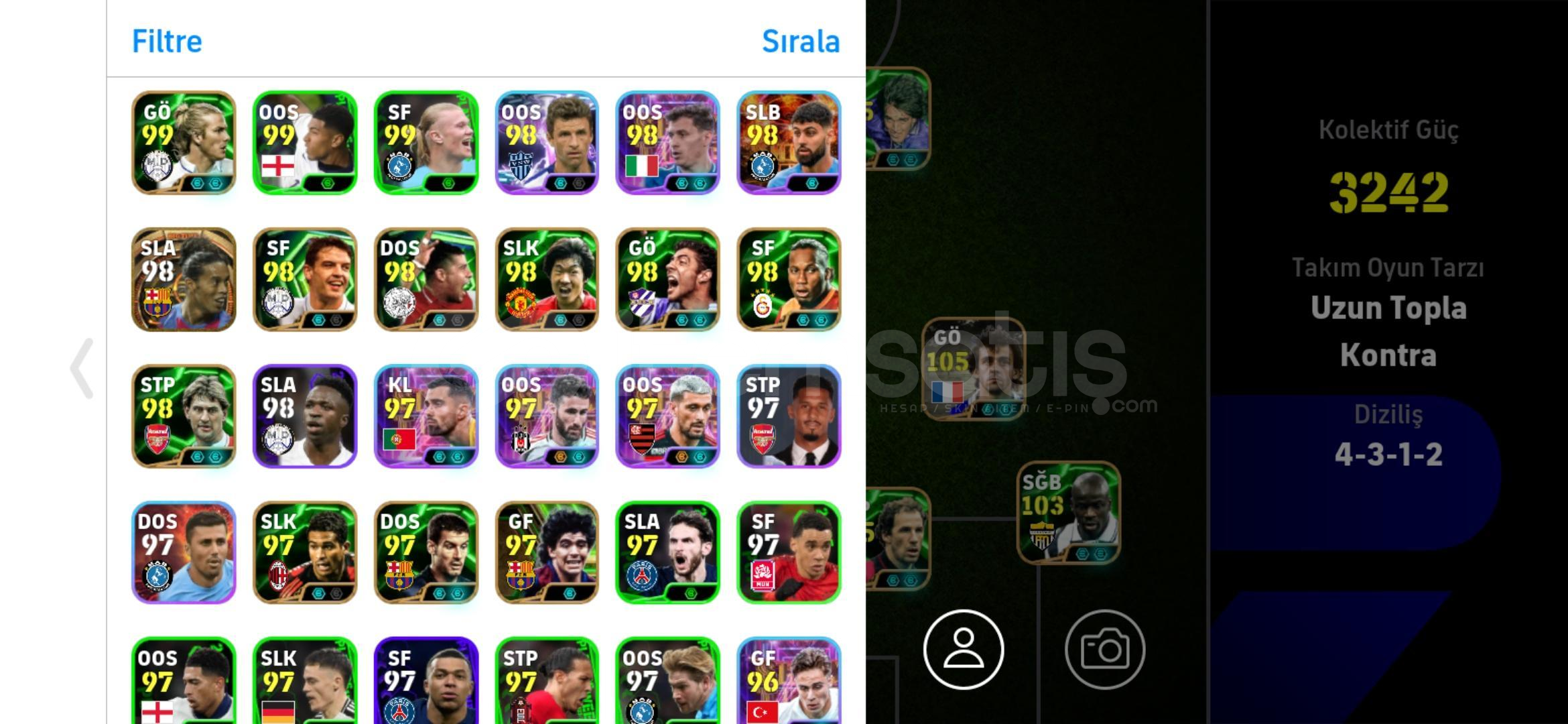 3250 kg kadar kgsi çıkabilir özel basım olmadan bazı oyuncularin özel basımi olduğu için şuan kgsi 3242 kg olarak gözükmektedir - mc yoktur Tek bağdır sadece konami ID bağlıdır Google play bağlı değildir Hesap fotoğraflarda gördüğünüz gibidir Alana hayırlı olsun