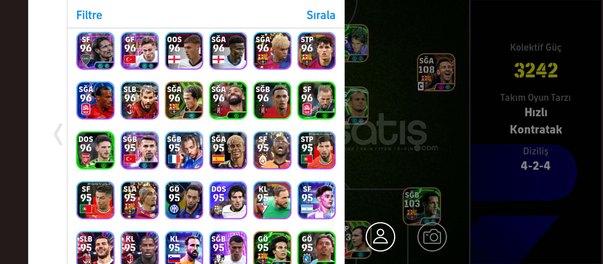 Hesap 3242Kgdir3 Bombacısı Vardır108 Messi105 Zico104Bergkamp30+ Epic kart vardırVan Basten 105Ribery 105Sneijder 105Olise 104Maldini 105 ve daha fazlasıResimde gözükeninde altında epicler vardır-Mc yokturHesap Çift bağdır ama sorun çıkmaz çıkarsa iade yapılırİndirim YapılırDetaylar ve pazarlık için Dm gelmeniz yeterli