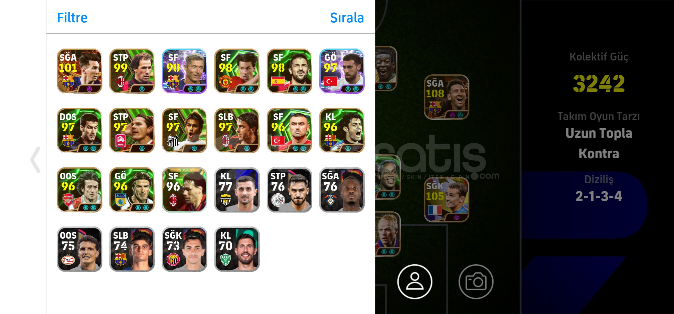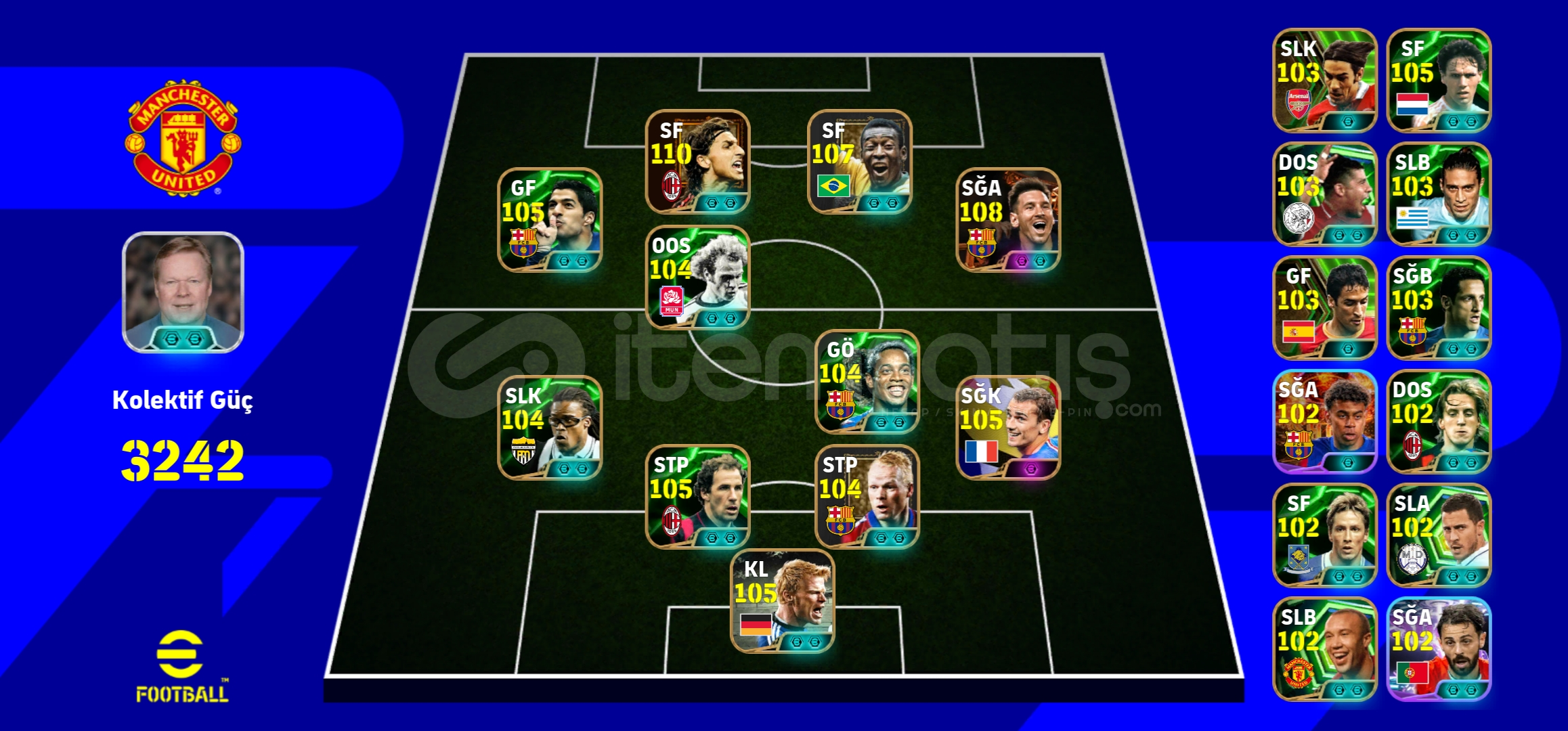 🔥3242 Kollektif Güç. 110 Zlatan İbrahimovic. 108 Pele. 108 Bombacı Messi.104 Bombacı Hoeneb. 105 Ronaldinho. 106 Luis Suarez. 105 R. Koeman. 105 A. Grizman. 105 Oliver Kahn. 104 Edgar Davids. 105 Baresi.