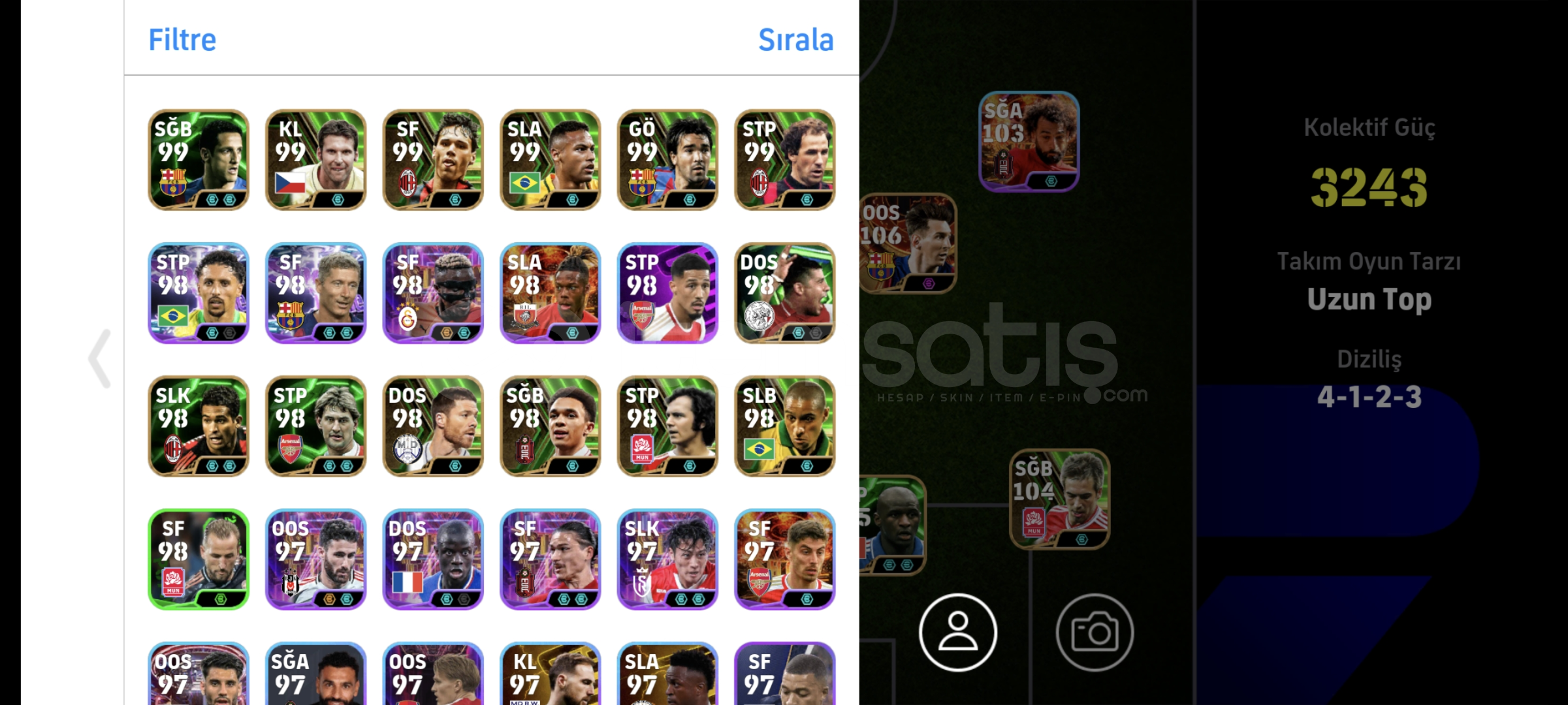 HESAP ÖLÜ BAĞDIR SONUNA KADAR KEFİLİM SIKINTI YAŞAMAZSINIZHesap gördüğünüz gibidirRezervi dopdoludur kadroya giremeyen birsürü paralı çok iyi kartlar vardırOyunun en iyi kartları en sağlam çok iyi kartlar vardırÇok sağlam kartların yanı sıra eskiden kalma çok nadir kartlarda vardırRezerve foto yetmiyor koyamıyorum6 Adet özel menejer vardırB...