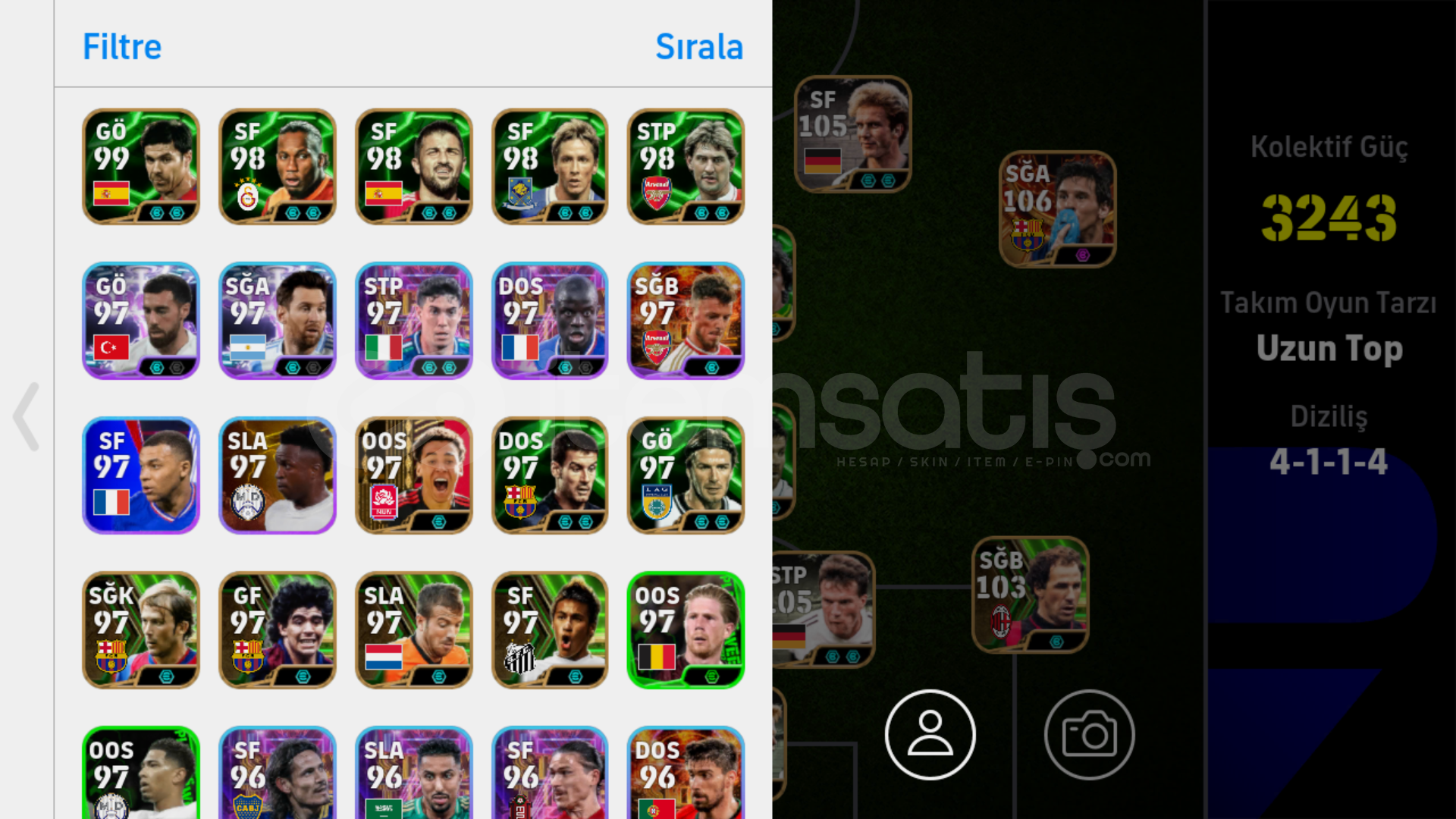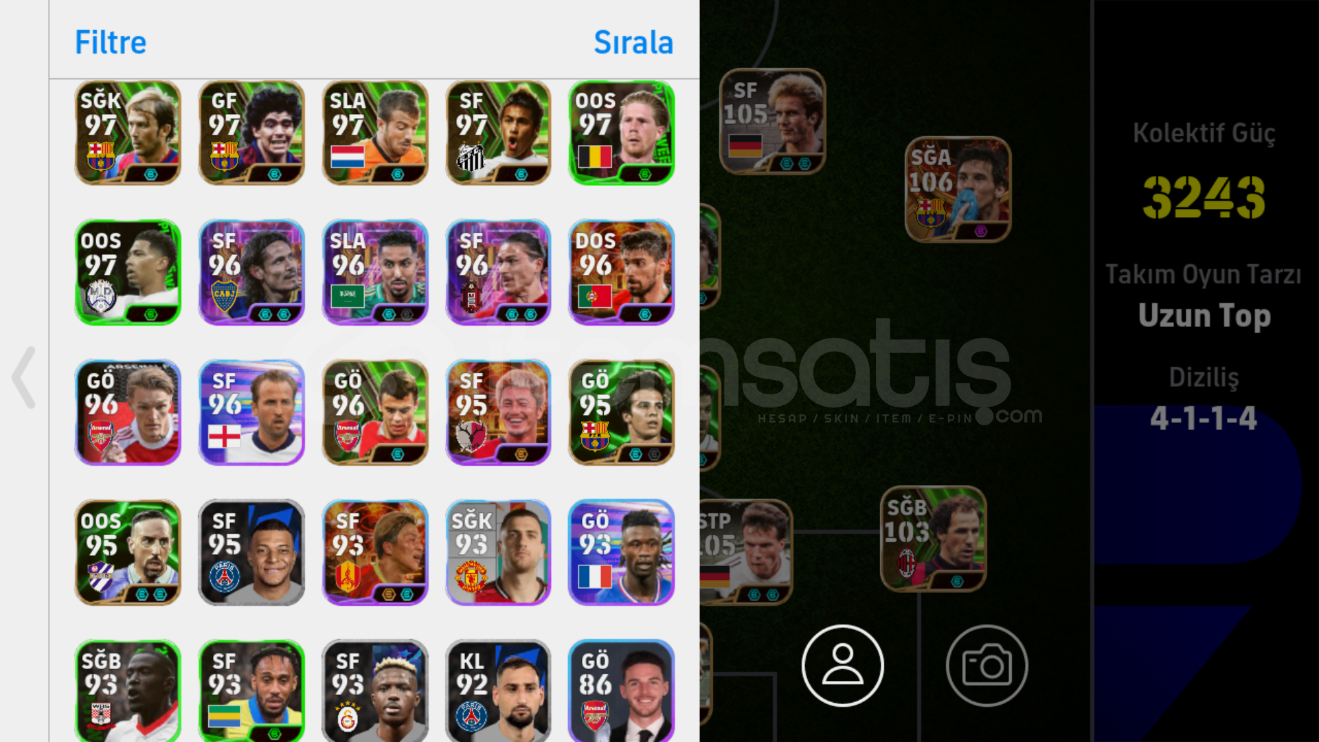 3245KGTEK BAĞ KONAMİ İDKRAMPON ÖPEN MESSİNEYMARSUAREZ ÜÇLÜSÜ VARDIRRUMMENİGE VARDIRBOMBACI ZİCOKAKAVE DAHA BİRÇOK EPİC İCON SHOWTİME OYUNCU VARDIRREZERV İYİİOS VE ANDROİD BAĞLARINA BAKILMIŞ OLUP TEK BAĞ KONAMİ İDGİRİŞ HAKKI VARDIR-MC YOKTURBÖLGESİ TRDİLİ TRSORUNSUZ HESAPPROFİLİMİZDEN DİĞER HESAPLARA GÖZ A...