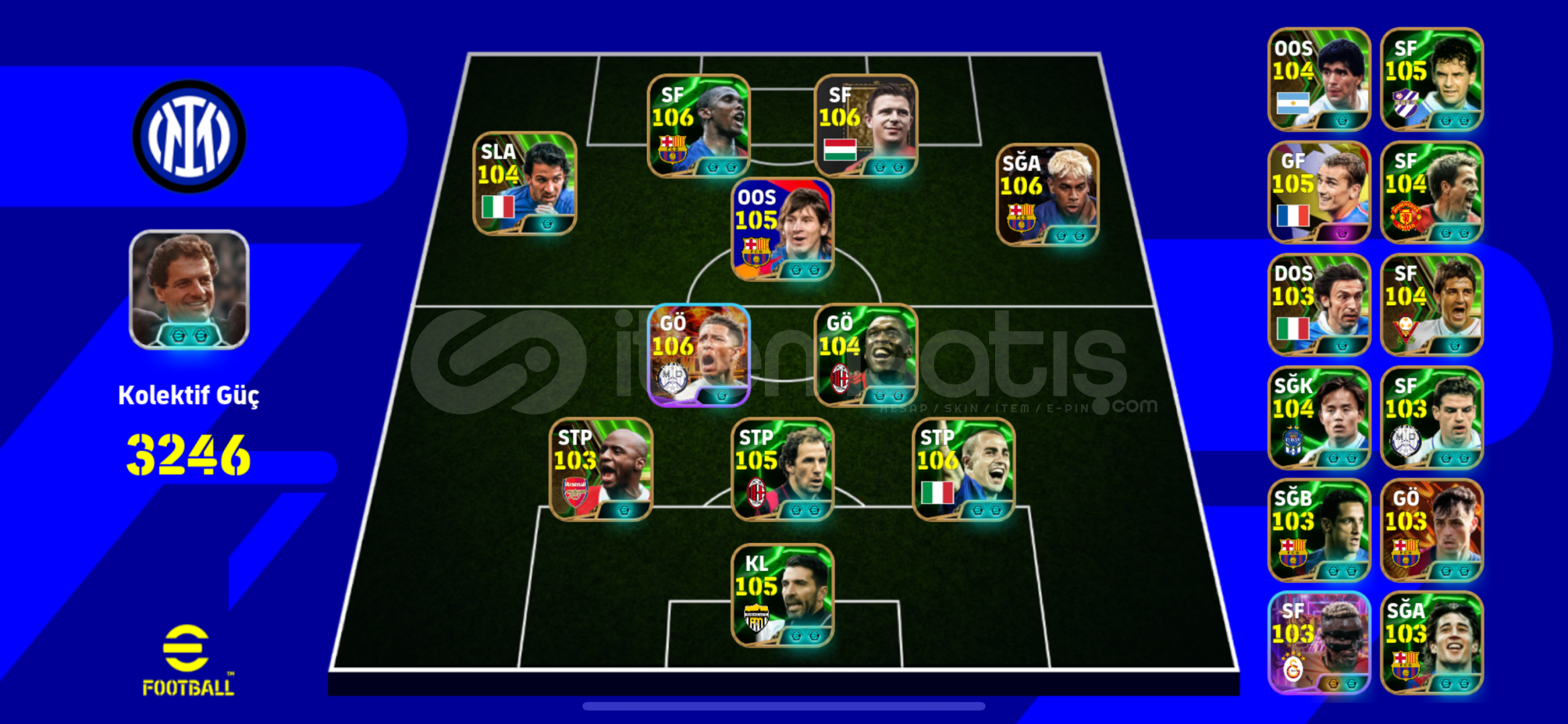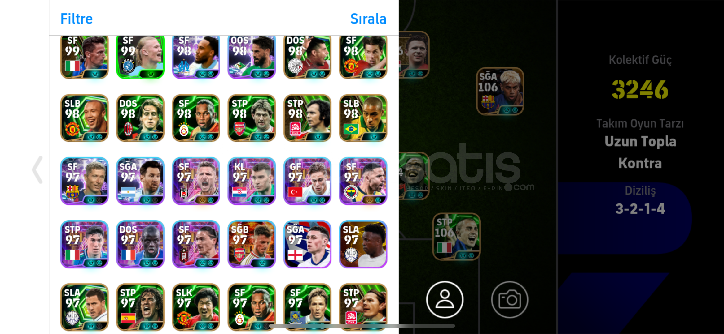 klasmanda ilk 19. da prime hesap 3246 gücünde Hesabı 5000 aldım para lazım diye satıyorum acil satılıktır . Biraz - coin vardır . Zararına veriyorum 106 lık 4 oyuncu var puskas eto yamal cannavaro bombacı del piero epik nostalji kadro alana hayırlı olsun . Aciillll satılıkkkk