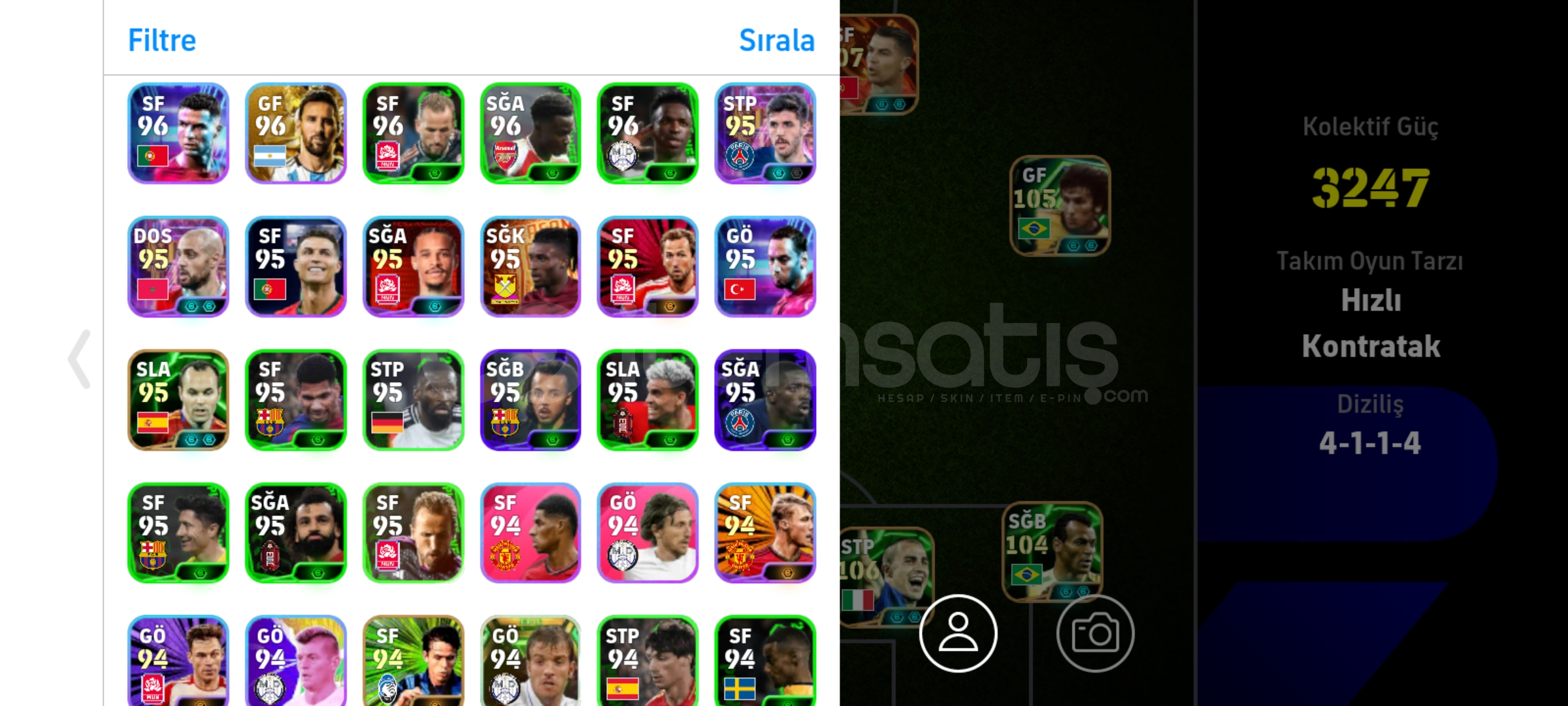 Hesap aşırı sağlamdır bu fiyata bulamazsınıztek bağ konami id Ofansif bir TD ile kolektif rahat 3250 yi geçer detay için dm ( puskas 106 Pele 108 ...)Sağlam TD ler de vardır