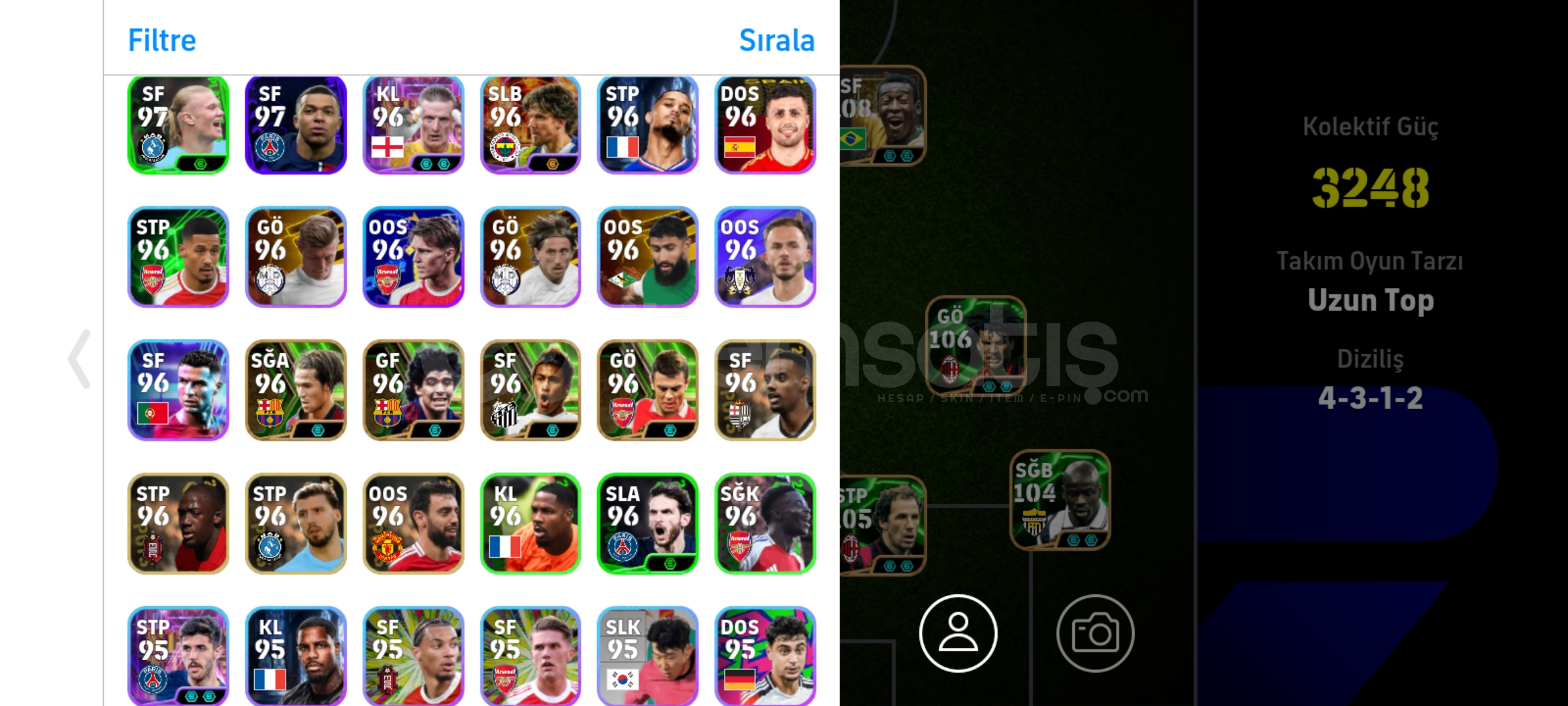 HESAP TEK BAĞ KONAMİ DİREK SİZİN MAİLİNZE AKTARILACAK ALICIYA HAYIRLI OLSUN -MC KESİNLİKLE YOKTUR OYUNCULAR GENELDE PARALİDİR İNCELEME YAPABİLİRSİNİZ REZERVE DOLDOLU FOTOLARI KOYDUM PİYASAYA GÖRE FİYAT UYGUNDUR ALICIYA HAYIRLI OLSUN
