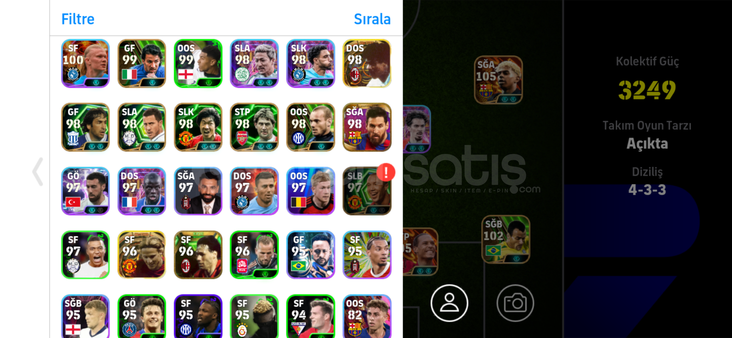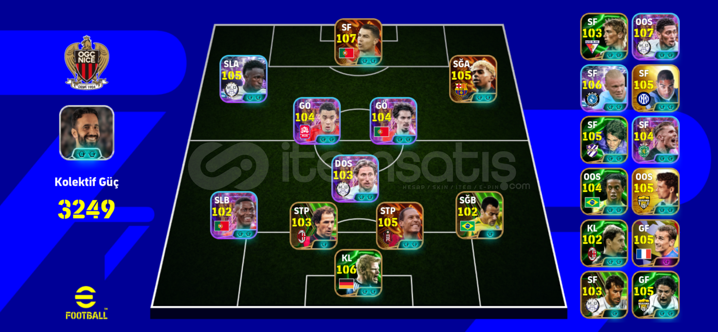 107 RONALDO105 VİNİCİUSBOMBACI YAMAL2 TANE BOMBACI DEL PİERO(DİĞERİ REZERVDE)104 VİTİNHA106 HAALANDVE SAYAMADIĞIM BİRÇOK SÜPER OYUNCU MEVCUTTURTEK BAĞ -MC YOK