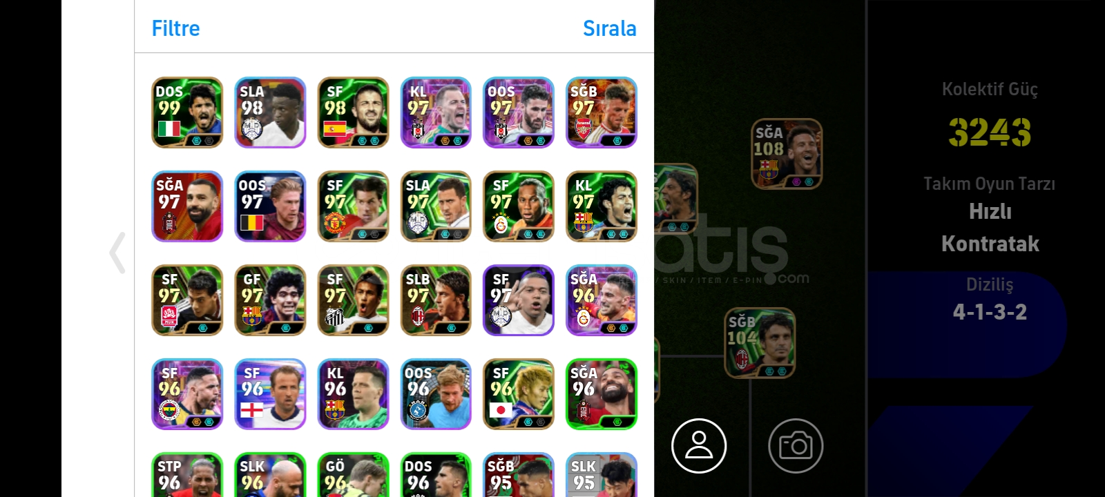 Hesapta 25 adet paralı oyuncu vardır4 bombacıYamalYunus AkgünRafa SilvaMessiTek bağ
