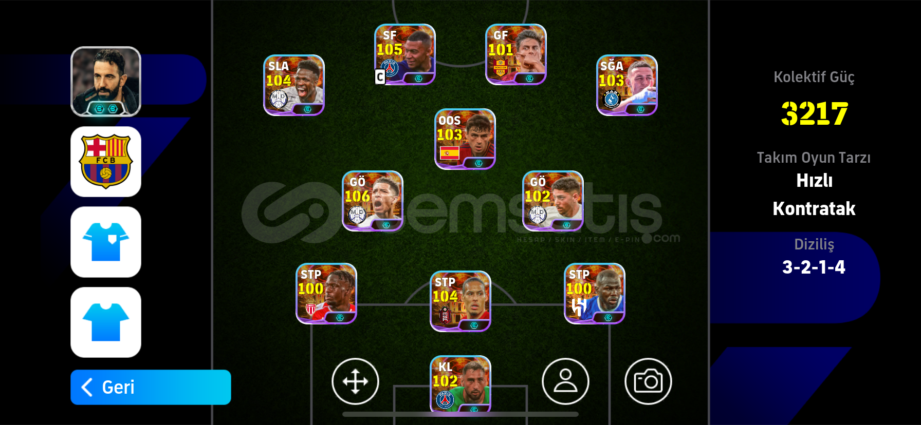 Pakette (sadece eFootbal parasıyla açılan paketlerden olmak üzere) 33 tane 150 lik 2 tane de 100 lük paketlerden çıkan epic, showtime oyuncu vardır ve 3 bombacı vardır ilk gelen alır pazarlık için yazmayınıztek bağdır 2 farklı show time kadro vardır