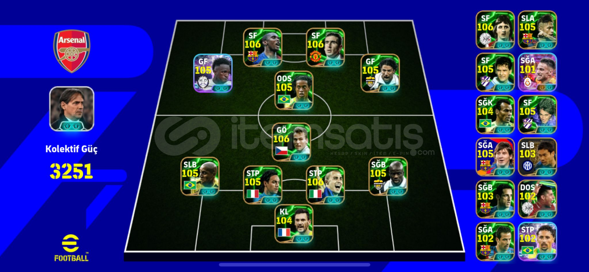 MAX 3253KGTEK BAĞ KONAMİ İDSAVUNMA HATTI OYUNUN EN İYİLERİYLE DOLU..!!!!!HÜCUM HATTI FENASAL HER ŞUT GOL..!!!!PİKE YAPAN ORTACILARLA DOLU..!!!YERİNE ORTA YAPAN OYUNCULARDA VAR..!!!8 TANE PARALI HER BİRİ EFSANE TD VAR..!!!İOS ANDROİD BAKILMIŞTIR TEK BAĞ KONAMİ İDGİRİŞ HAKKI VARBÖLGESİ TRDİLİ TR80MC VAROYUNCULAR PARALI OLAN VE OYUNUN EN İYİ KARTLARINDANDIRFIRSAT HE...