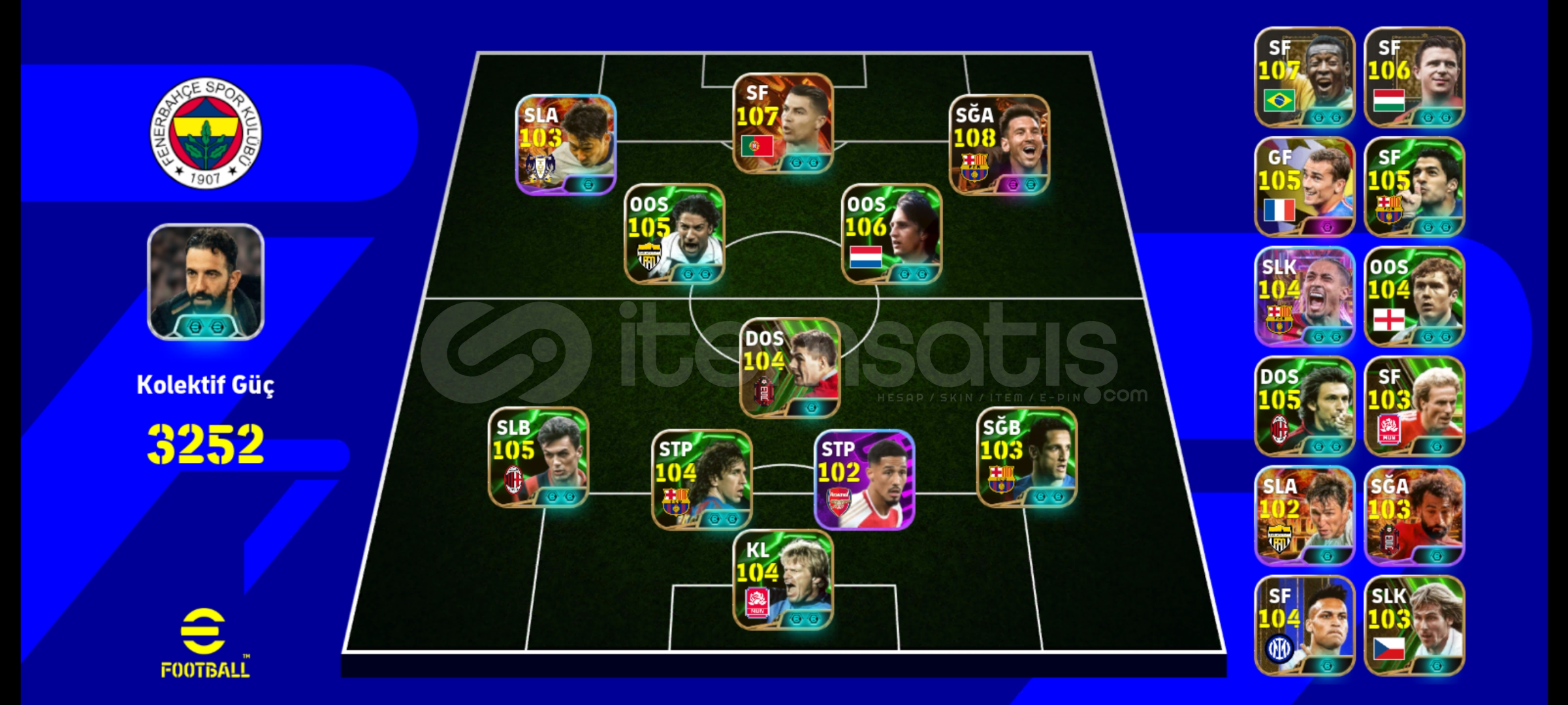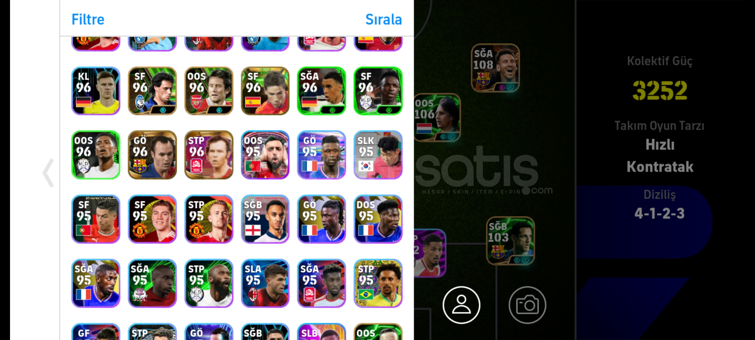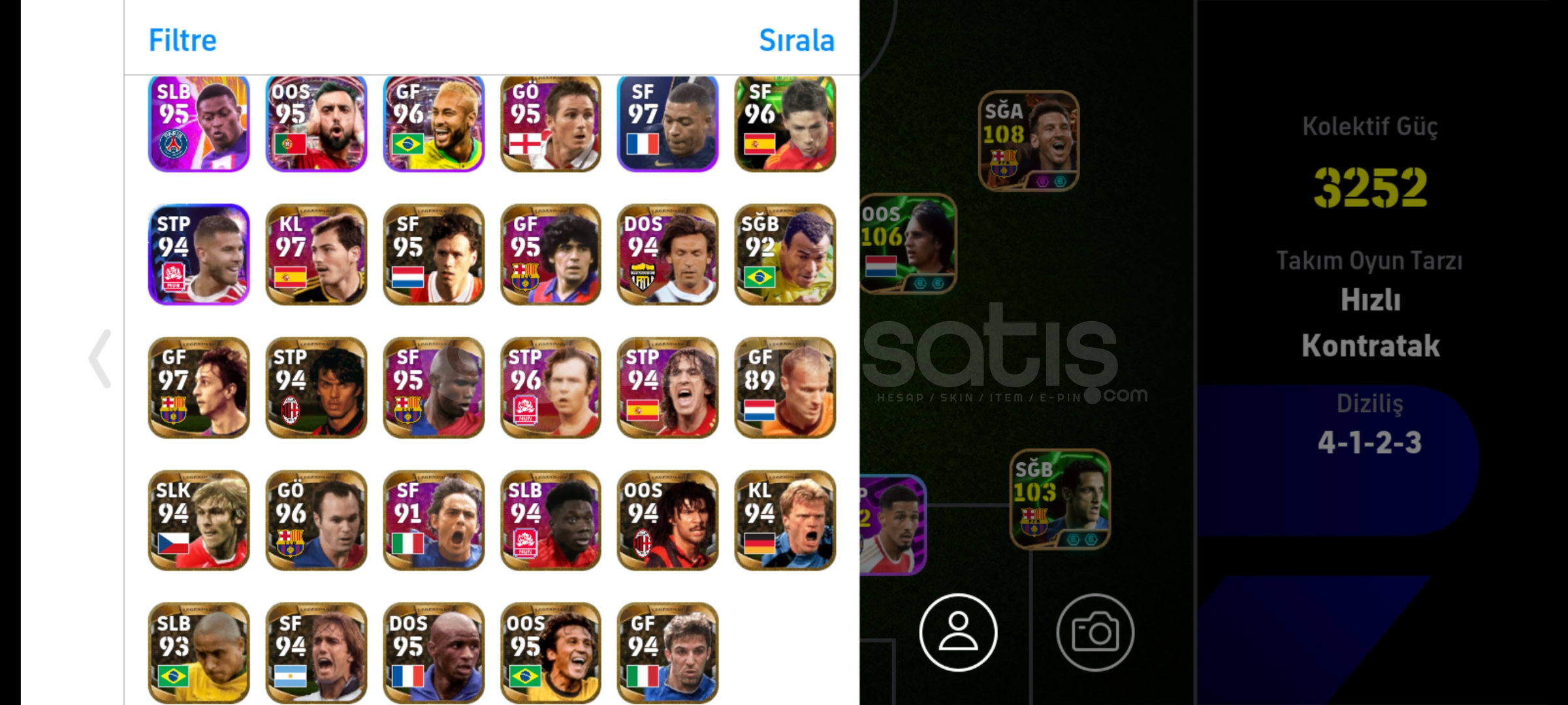 Hesap 5 yıllık en eski hesap dolu dolu 9 milyon GP.107 Ronaldo108 Messi108 pelefull legend kartları eski kartlar.Paraya sıkı&...
