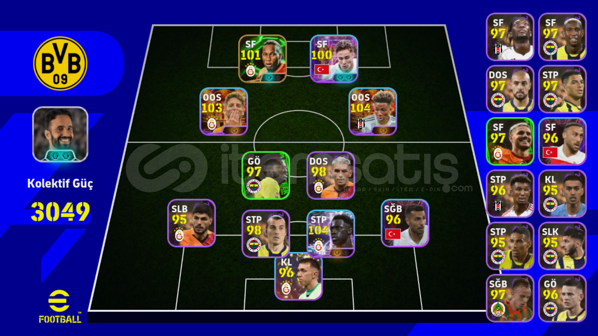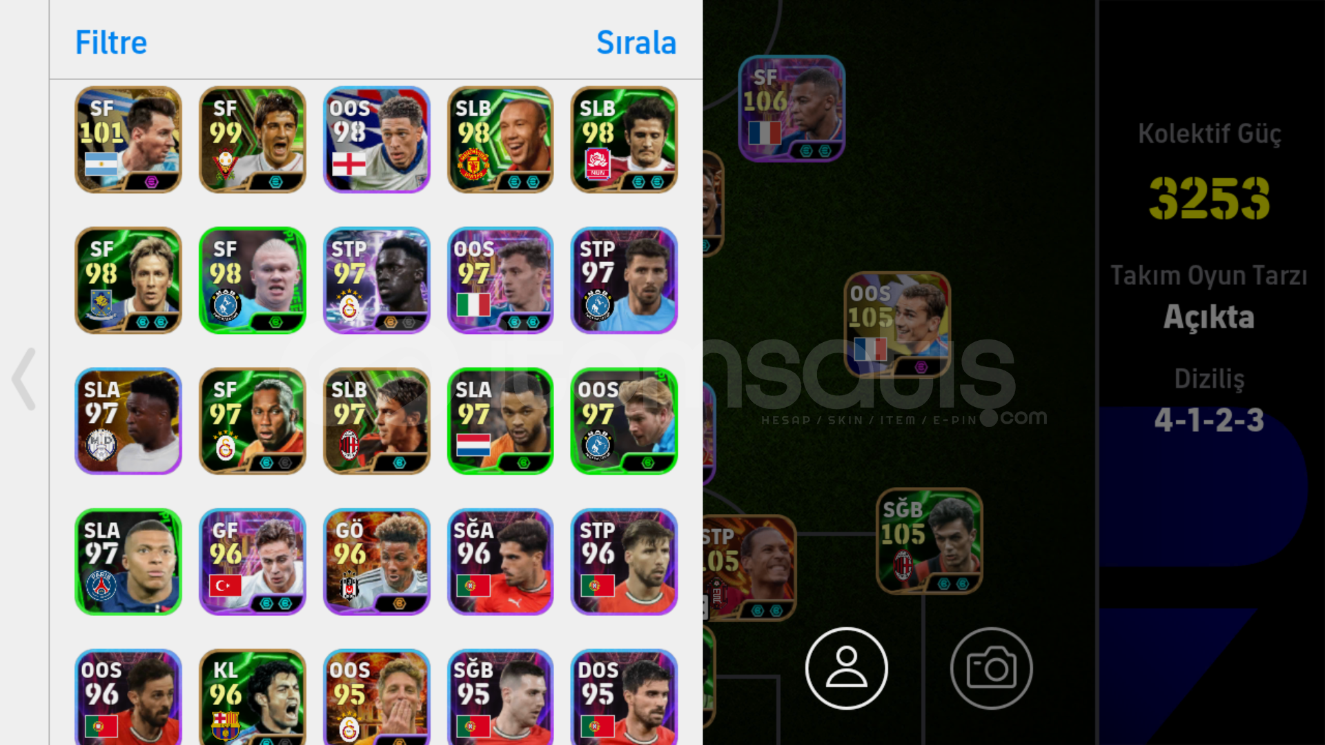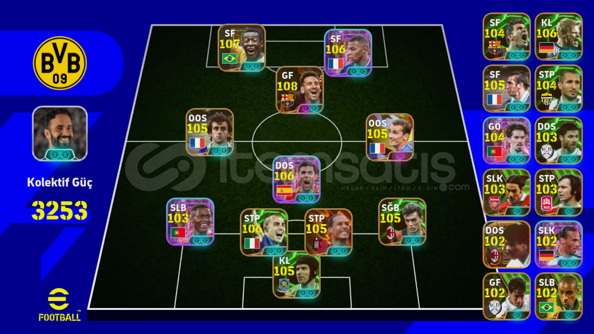 MAX KG 3255TEK BAĞ KONAMİ İD108 BOMBACI MESSİ107 PELE106 BOMBACI MBAPPE106 RODRİ106 CANNAVARO106 KAHN105 PLATİNİ105 GRİEZMANN105 VAN DİJK105 CANTONA105 MALDİNİ105 Cech104 BOMBACI DAVİD VİLLAVe daha birçok epic icon showtime oyuncuSÜPERLİG KADROSU MEVCUTTURİOS VE ANDROİD BAĞLARINA BAKILMIŞ OLUP TEK BAĞ KONAMİ İDGİRİŞ HAKKI VARDIR-MC YOKTURBÖLGESİ TRDİL...