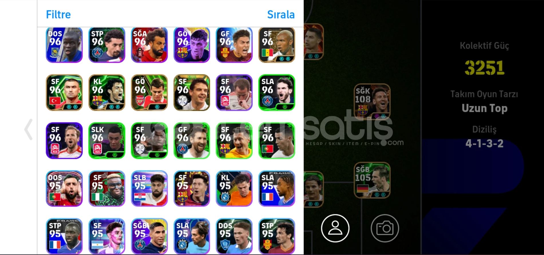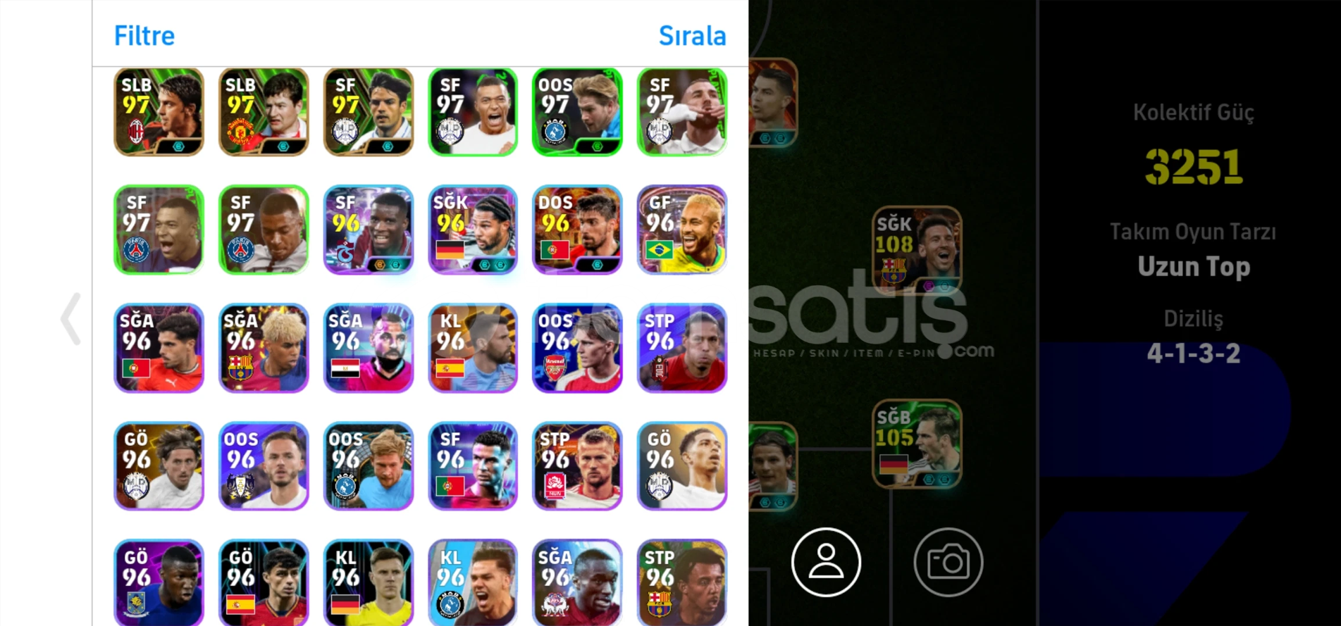 HESAP HAKKINDA:Pes tarhinin en iyi forvetlerine sahibim Oynamasanız bille forvet hattı oynuyor!!Güçlendiriciler ayarlandıktan sonra 3260+ kg olur!!Aşırımı mı Aşırı Epic ve Old kartlar mevcut Aşırı Ucuza Mhappe/Messi/ronaldo/Rummenige!!Güzel fiyata efsane hesap çok durmaz kaçırmayın vallahi─────────────...