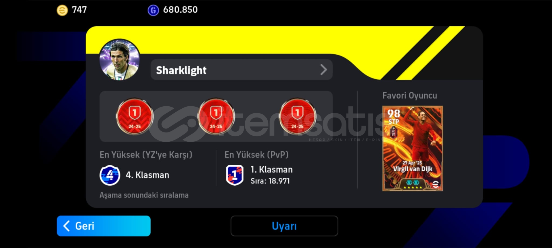 3256 KG Tek Bağ eFootball hesabı. IOS ve Android tek bağdır. -mc yoktur. 700+ mc bulunmaktadır. Itemsatış'tan ba...