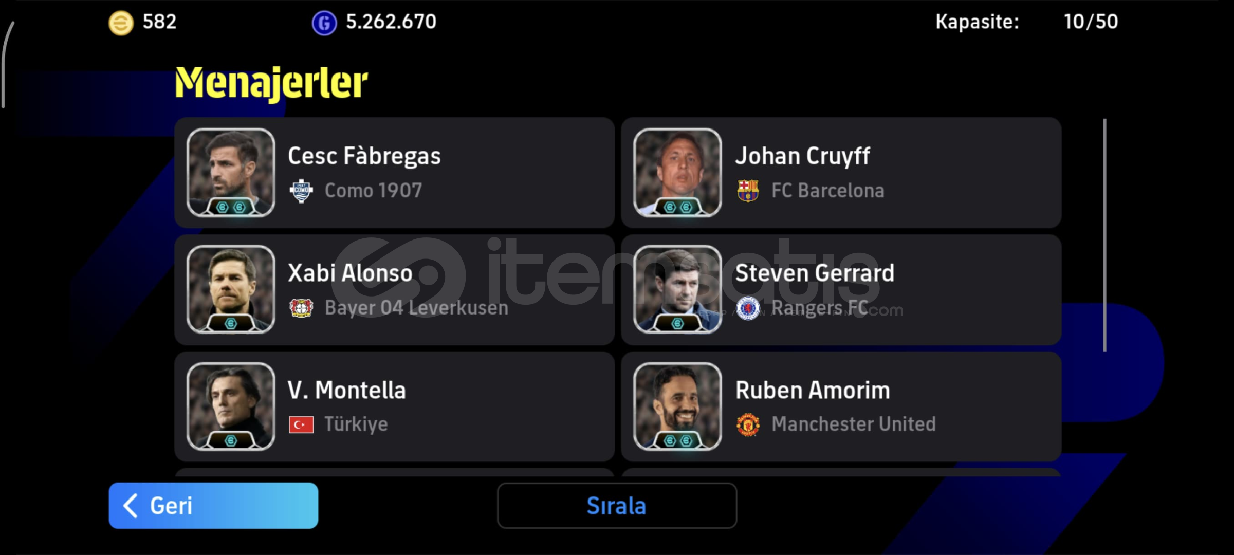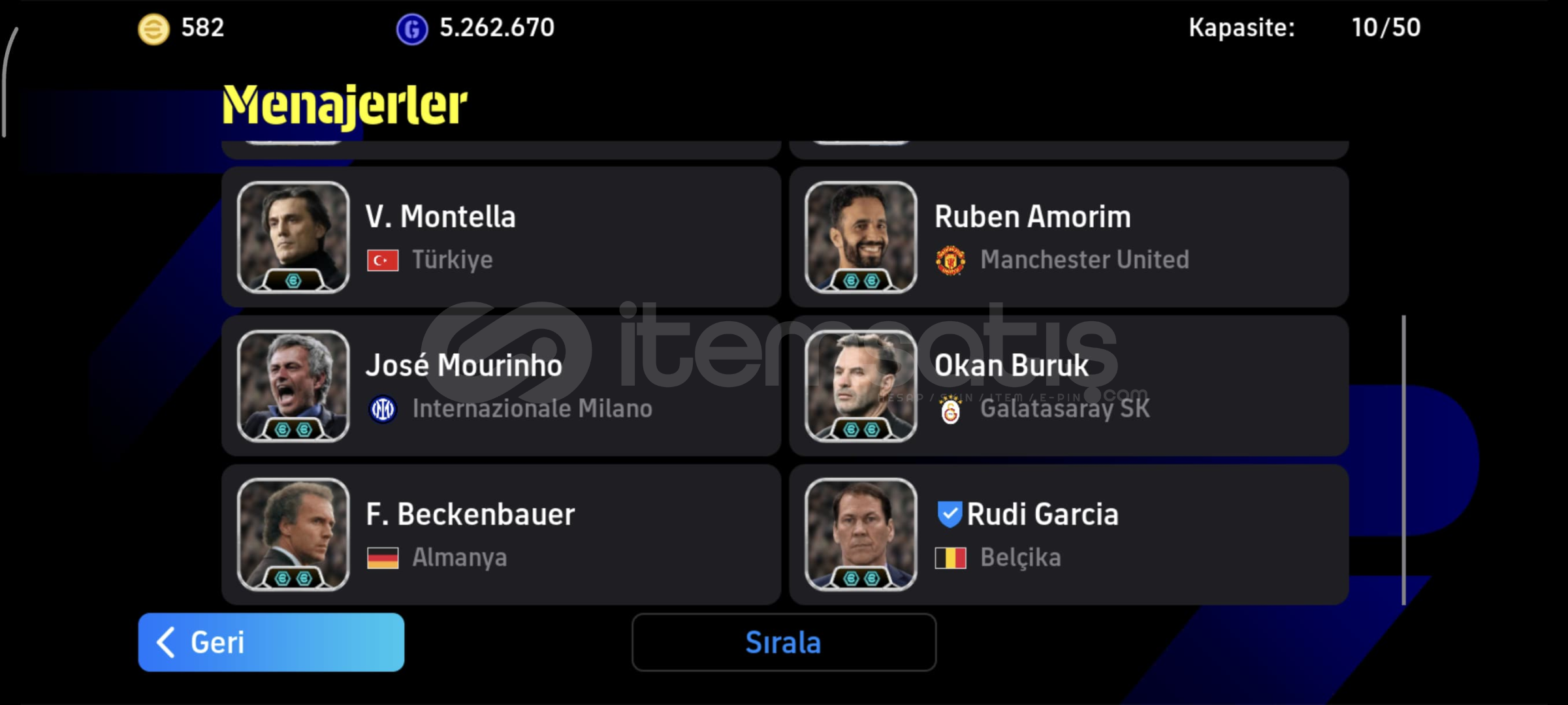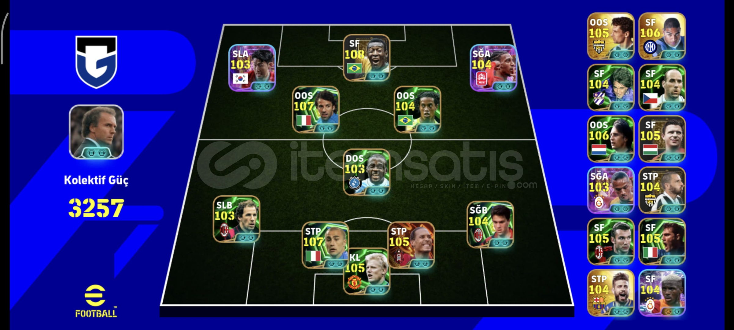 8 BOMBACILI EFSANE HESAP MAIL DEGISTIRME İMKANI✅️✅️1000den FAZLA DP✅️✅️580 MC✅️✅️BECKENBAUER,MOURINHO GIBI EFSANEVI TEKNIK DIREKTORLER,RUDI GARCIA✅️✅️ÖMÜRLÜK HESAPANINDA DÖNÜŞ VE TESLİMAT✅️✅️not:hesap play gamese bağlıdır, konami id yoktur, bağlanacaktır