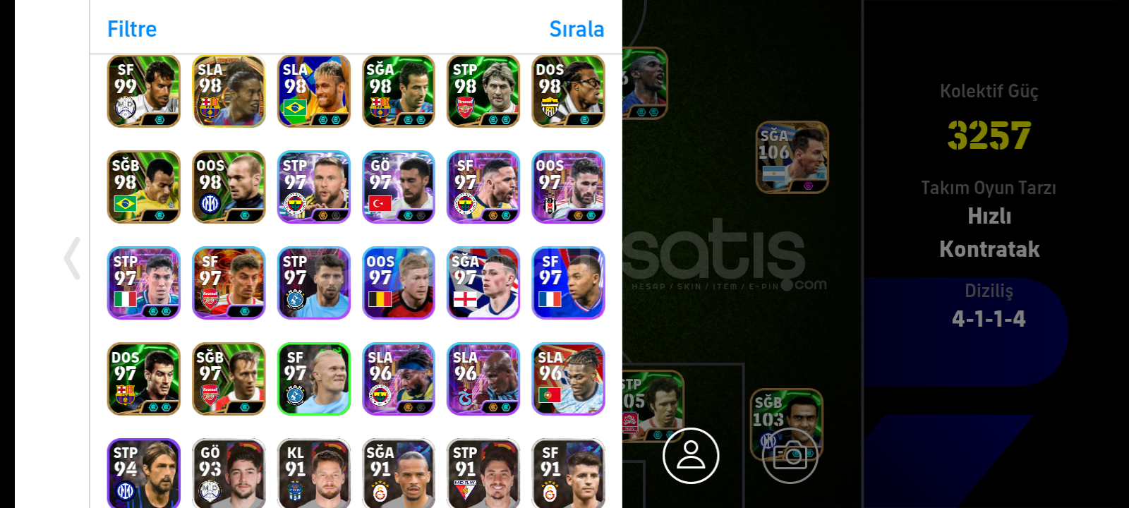 Hesap çok iyi iki tane bombacı varEksi mc yokRezerv iyiSüperlig kadrosu varTek bağEksi mc yokAldığınız an aktif olurum