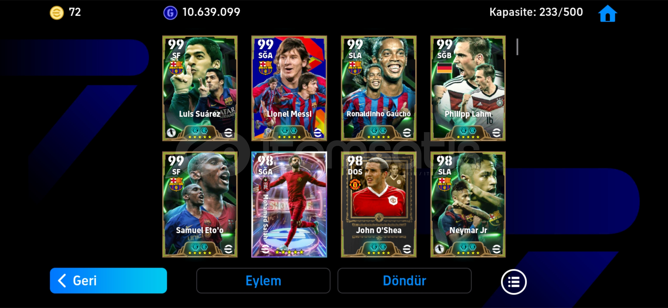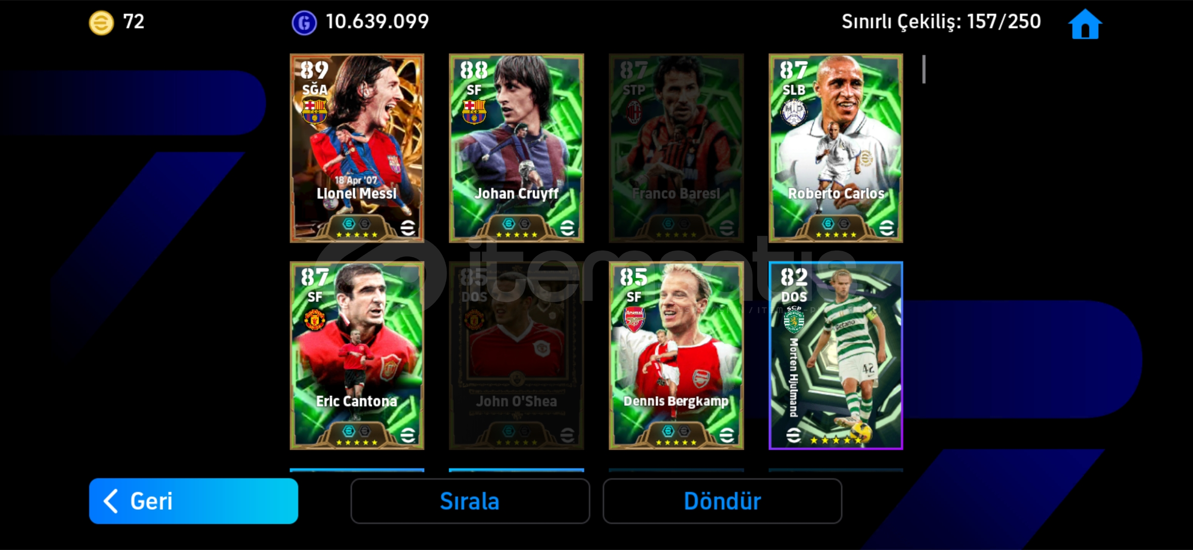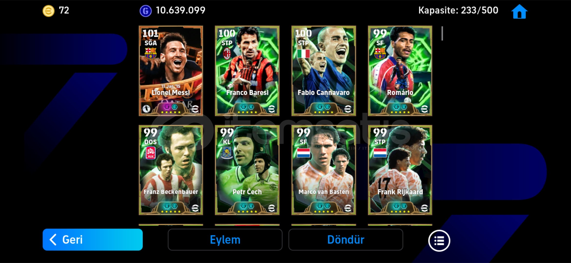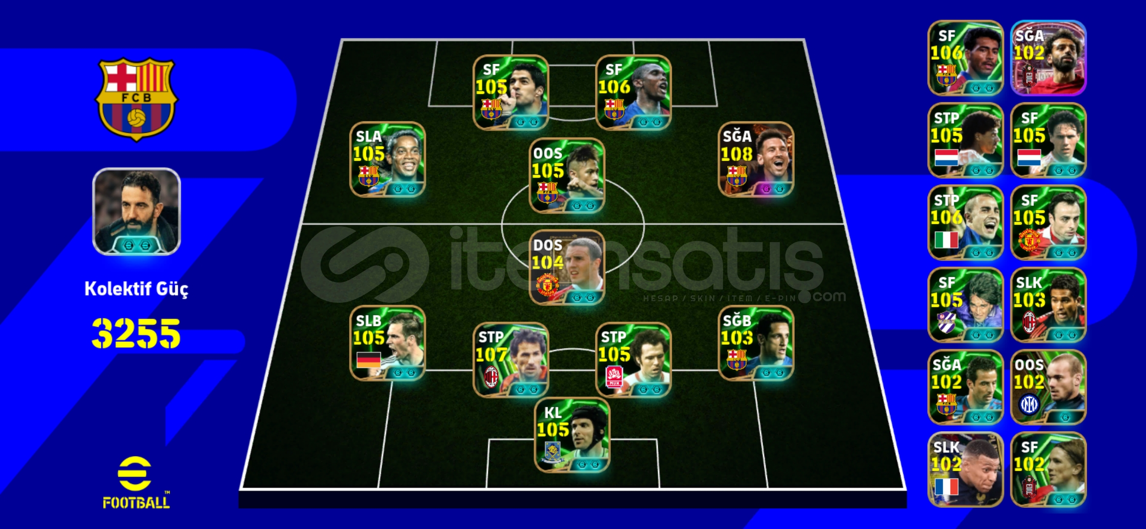 Hesap tek bağdır-mc yoktur!MESSİ PAKETİ 93 TOP AÇILMIŞTIR Hesaptaki Bazı Değerli Kartlar:108 Leo Messi (Bigtime) (Bombacı)108 Baresi 106 Suarez106 Romario106 Eto'o106 Cannavaro105 Neymar Jr105 Ronaldinho105 Berbatov105 Van Basten105 Rijkaard105 Beckenbauer105 Cech105 Lahm105 Batistuta105 Leo Messi104 John O' Shea 103 Serginho103 Neymar Jr103 Belletti102 Hazard102 Salah102 Mbappe102 Pep Guardiola102 Ludovic Giuly102 Sneijder102 Tony Adams102 Torres10...