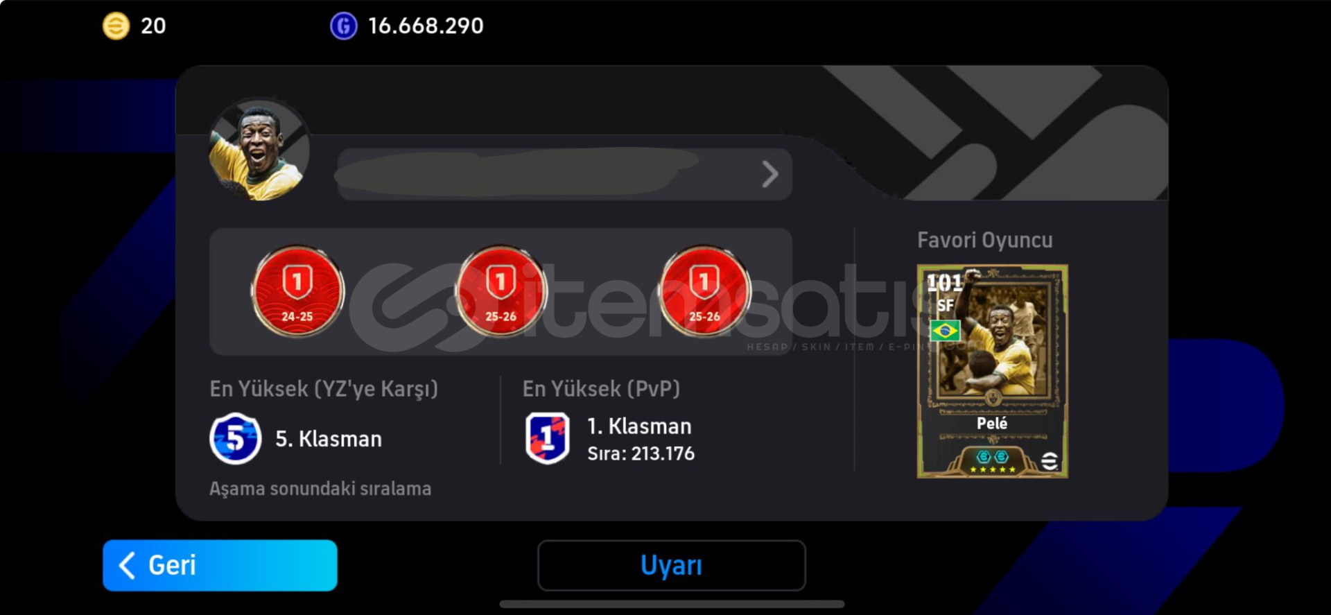 3260 kolektife sahip kökü 1.klasman bölgesi türkiye ve 3 bombacılı 7 özel hocaya sahip bir hesaptır.***Pazarlık az miktarda vardır***Hesabı direkt alıcıya vereceğim alıcıdan başka hesaba girebilen olmayacaktır