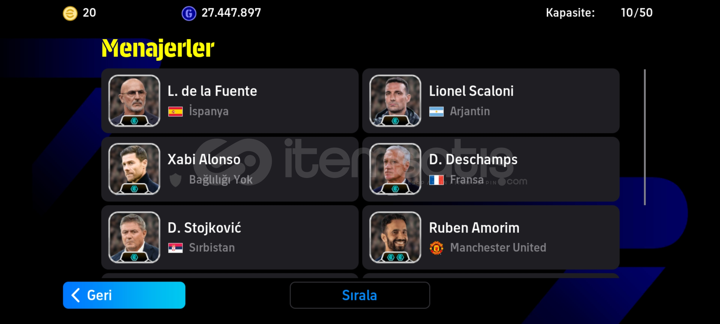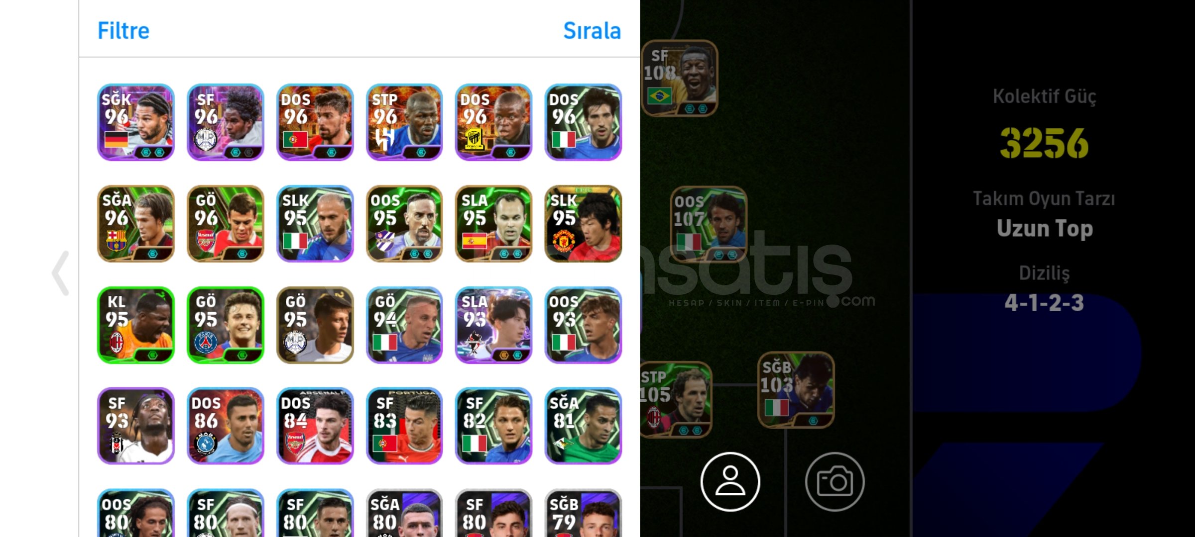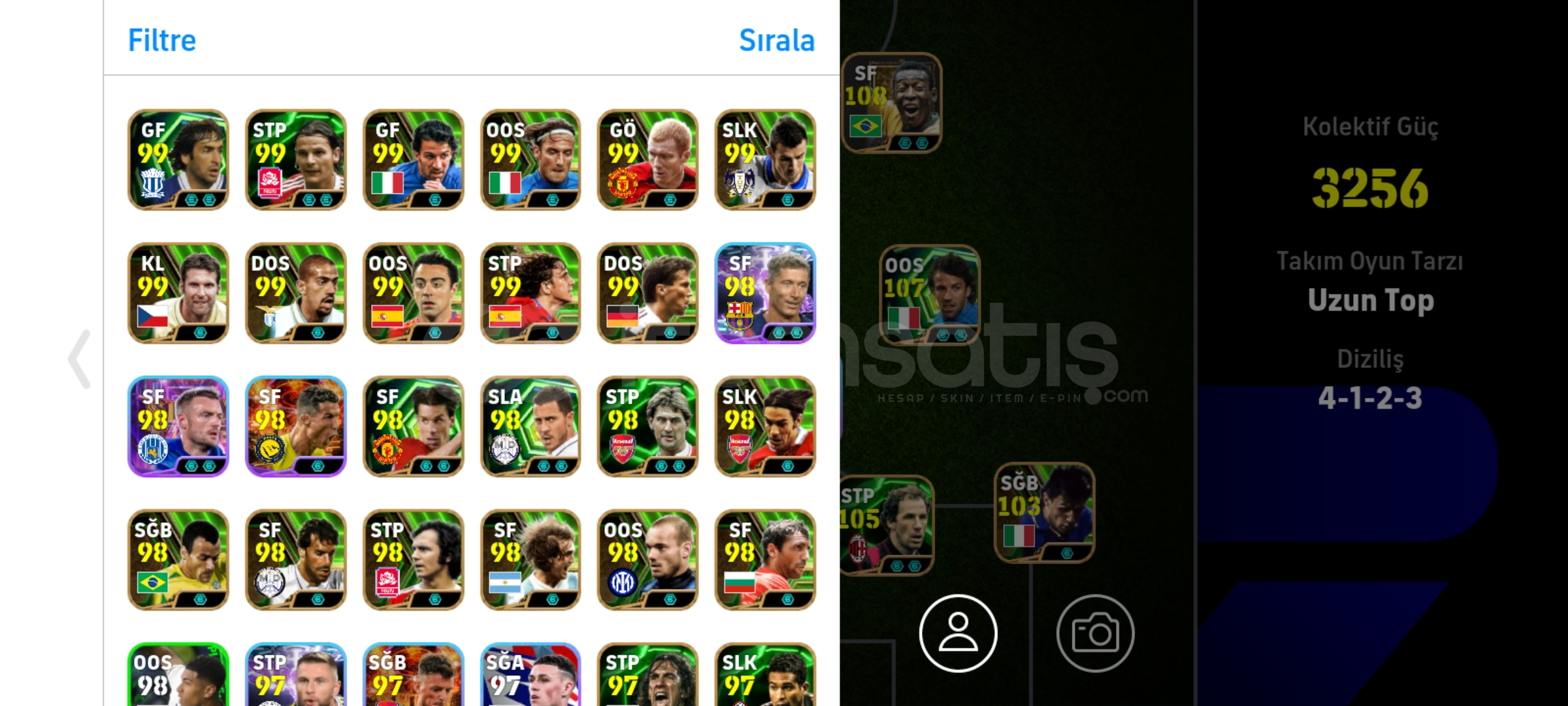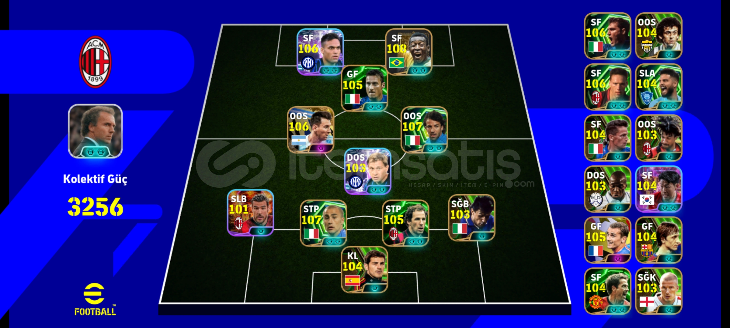 Efsane Hesaptır7 Bombacı Bulunur (2 tane Kadro Dışı)108 Pele107 Del Piero ( Çift Ayaklı Bombacı)106 Martinez ( Çift Ayaklı Bombacı)106 Van Basten105 Christian VİERİ ( Bombacı )105 Francesso Totti107 CannavaroVe Çok Daha Fazlası !Rezerv DoludurGoogle Play Tiki İşaretli Ancak Bağ SilinmiştirBu Fiyata Böyle Hesap İmkansız !İlk Kapan Alır😘