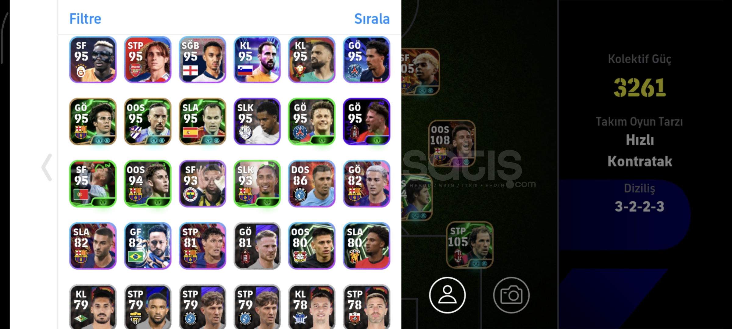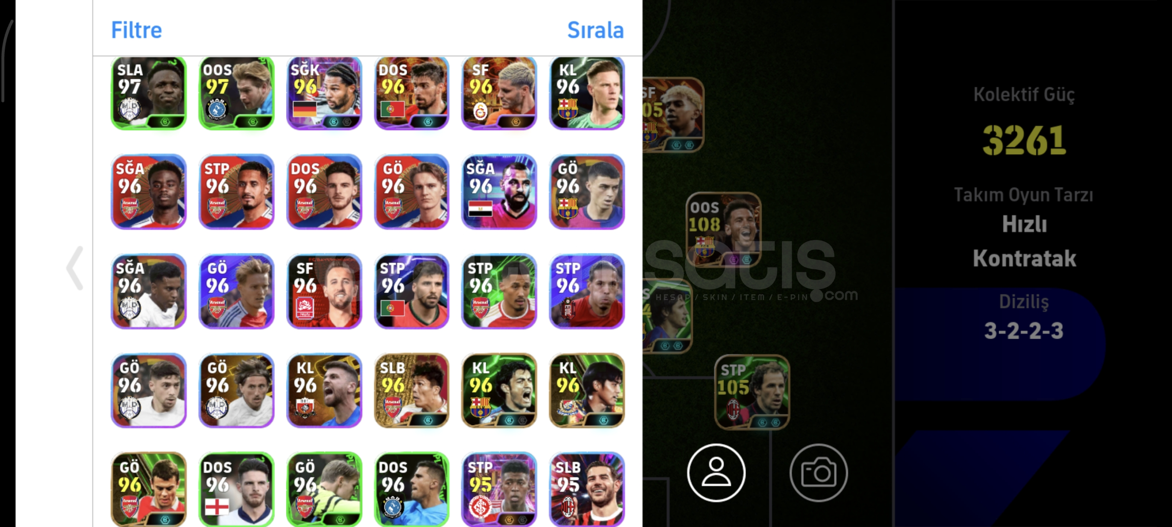 Guclendiricileri hesabı aldığınızda Doğu basarsınız ve 3265 + bulur hesabınız bu hesapta oyunun en meta 2 forveti sheva ve rumme bulunmaktadır iOS 2100+MC iOS Android tek bağ dır sorunuz olursa DM yazın pazarlık sünnettir