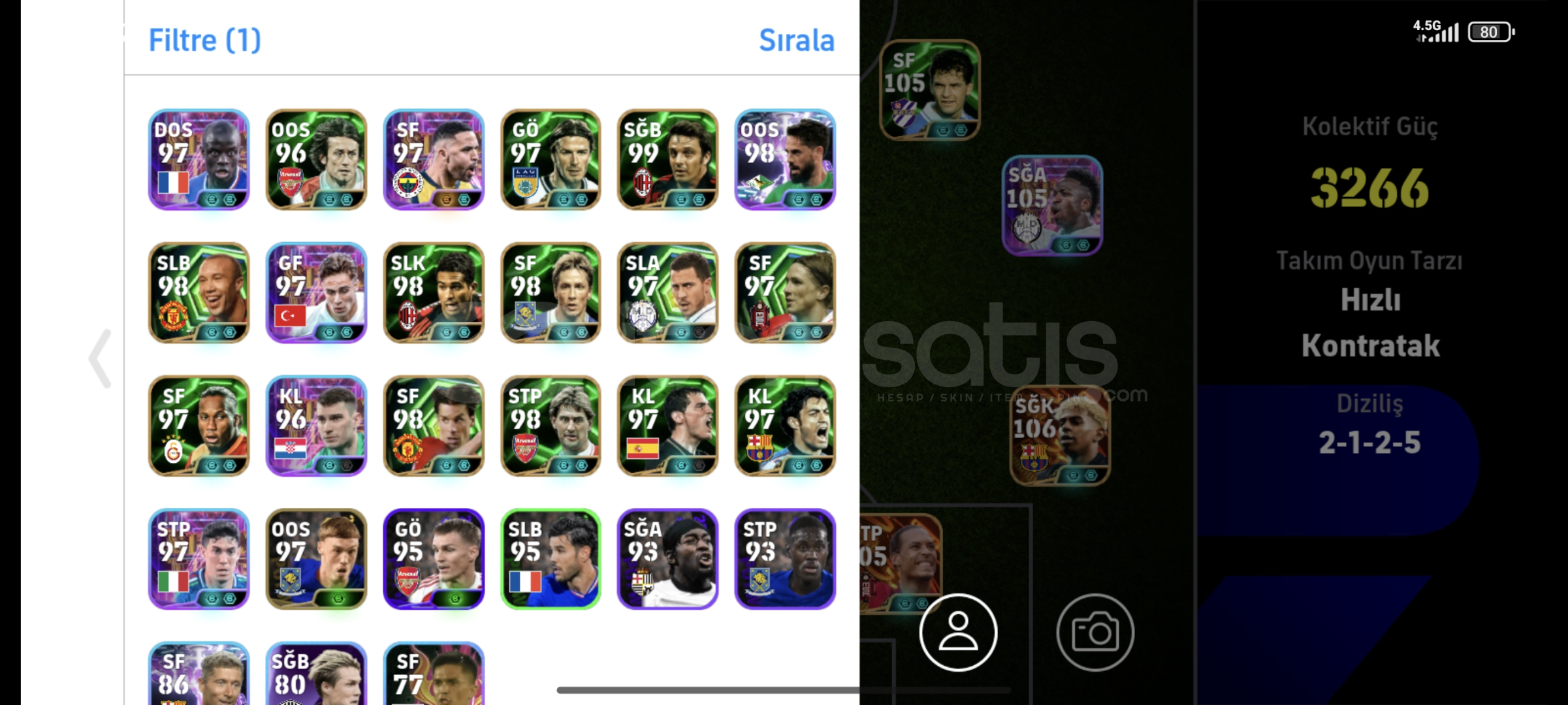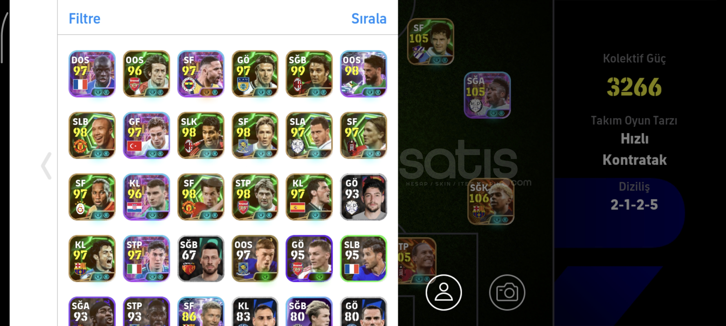 öncelikle selamünaleyküm hesabın ilk sahibiyim uzun zamandır oynuyorum çok emeğim ve param gitti . Hesap şu anlık 3266kolektif güçtedirhesabım tek bağdır başka bağı yoktur sadece konami id bağlıdır alan kişiye bilgileri üzerine alarak teslim edeceğim hesapta -mc bulunmamaktadır android ios tek bağdır hesap ilk 11 ve yedek olmak üzere rezerve yani mc yatı...