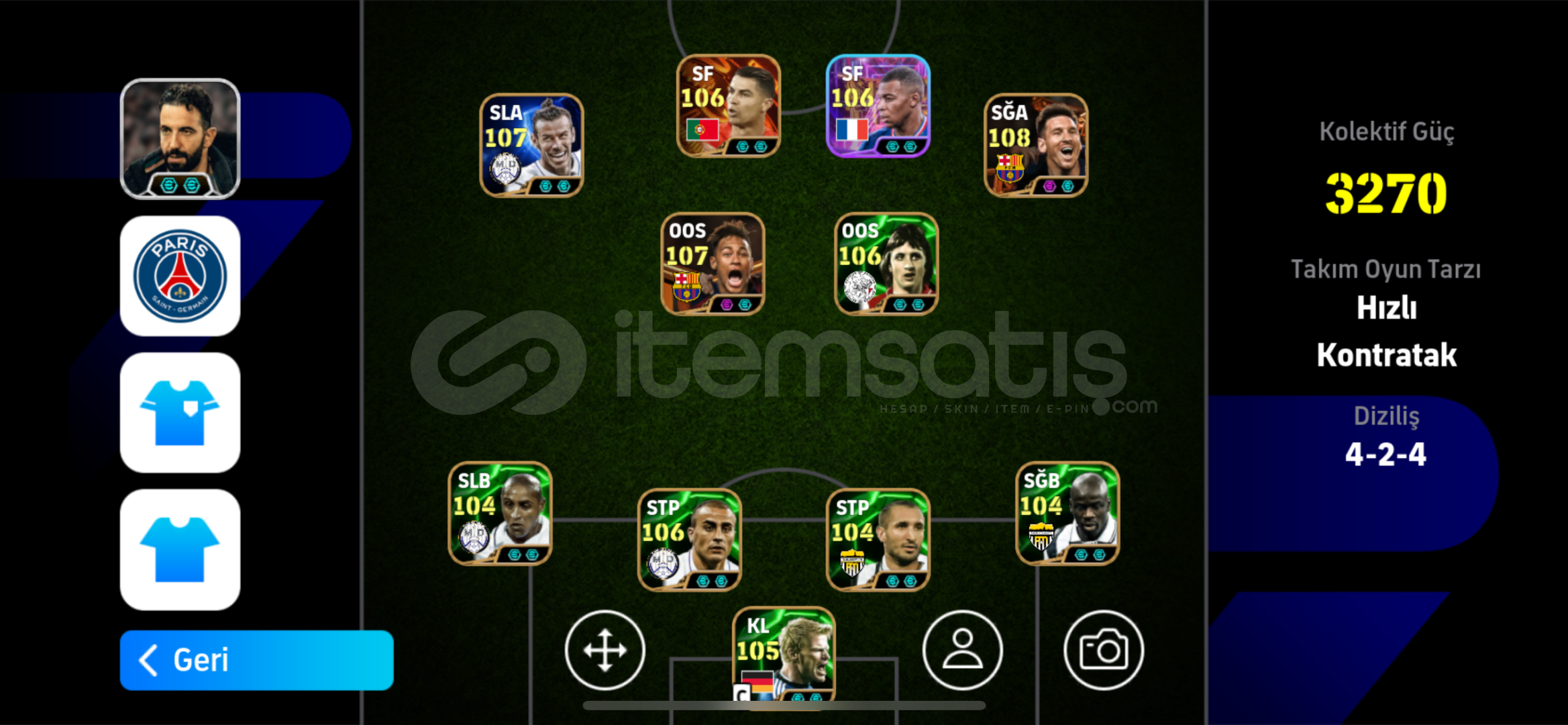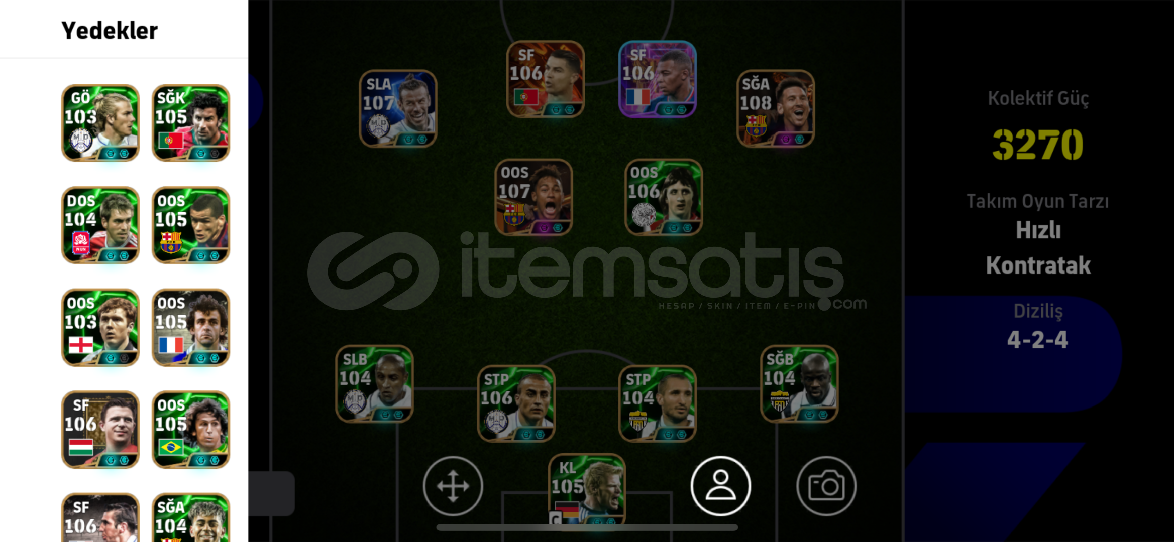 108 Bombacı Messi!!107 Neymar!!107 Gareth Bale!!106 Puskas!!106 Cannavaro!!106 Johan Cruyff!!106 Eric Cantona!!106 Ronaldo!!106 Mbappe!!105 Oliver Kahn!!105 Luis Figo105 Showtime Ronaldo!!105 Rivaldo!!105 Platini!!105 Zico!!105 Neymar!!105 Messi!!104 Roberto Carlos!!104 Lilian Thuram!!104 Rudiger!!104 Philipp Lahm!!104 Lamine Yamal!!104 Diego Forlan!!104 Chiellini!!104 Vitinha!!104 Bebeto!!103 Devid Beckham!!103 Scholes!!103 Haaland!!103 Bombacı Sane!!(Galatasary ve Almanya KARTI)103 M...