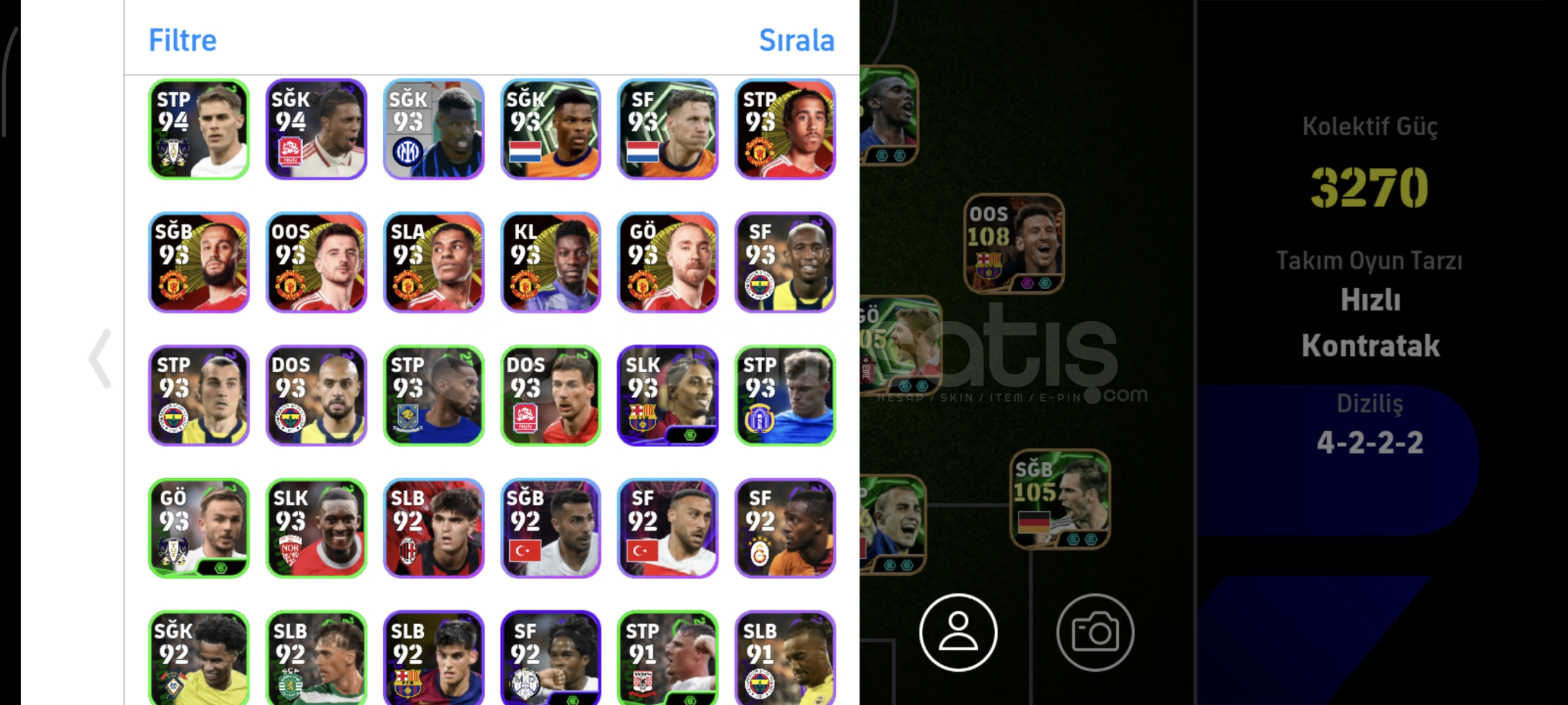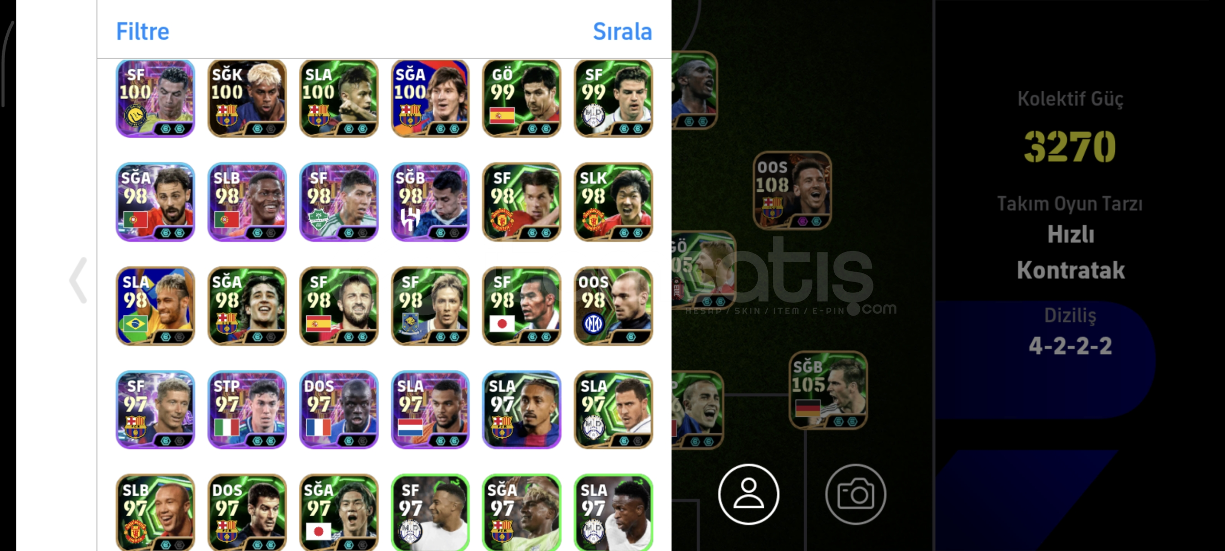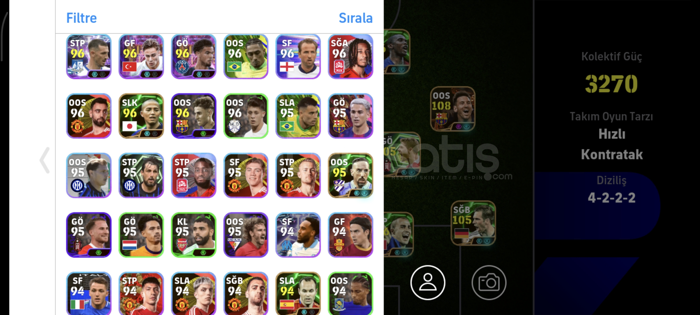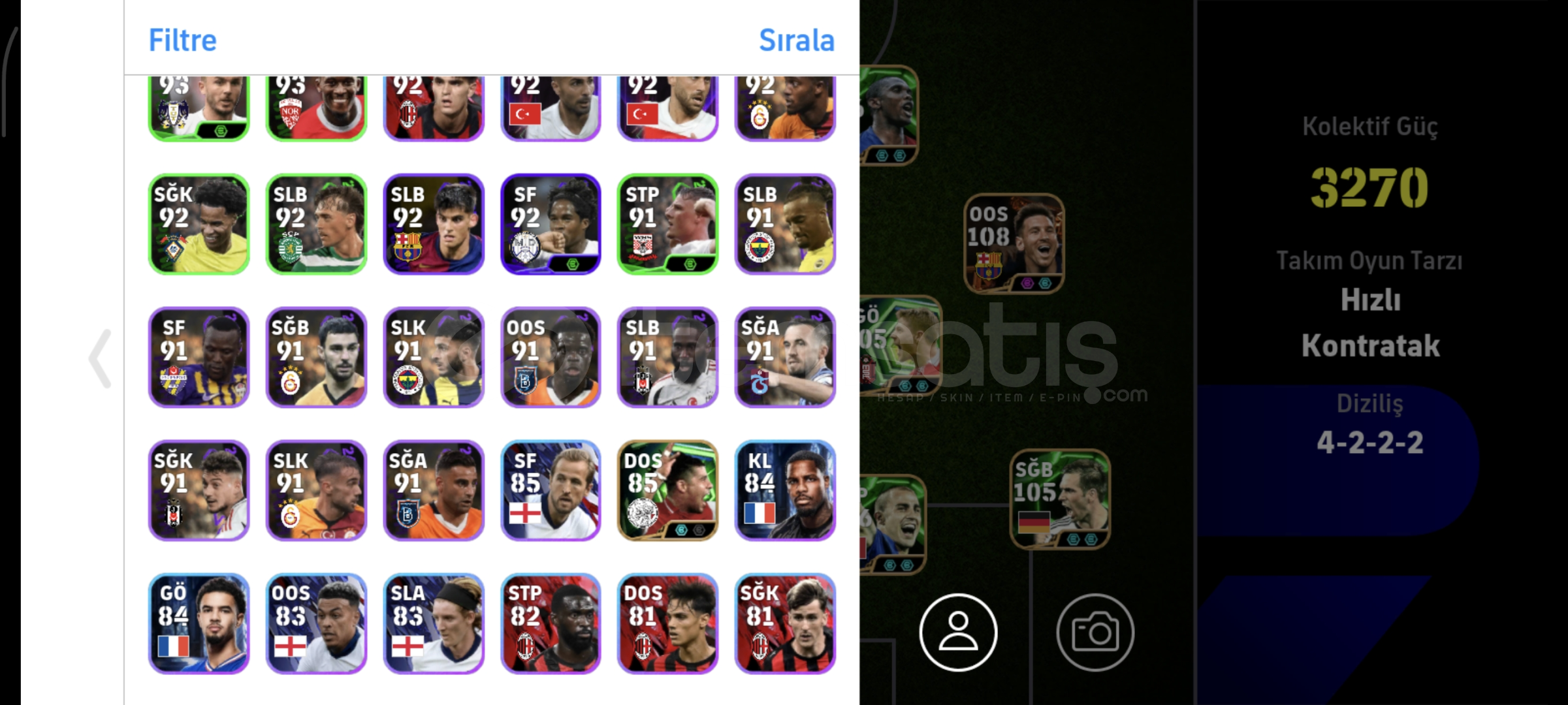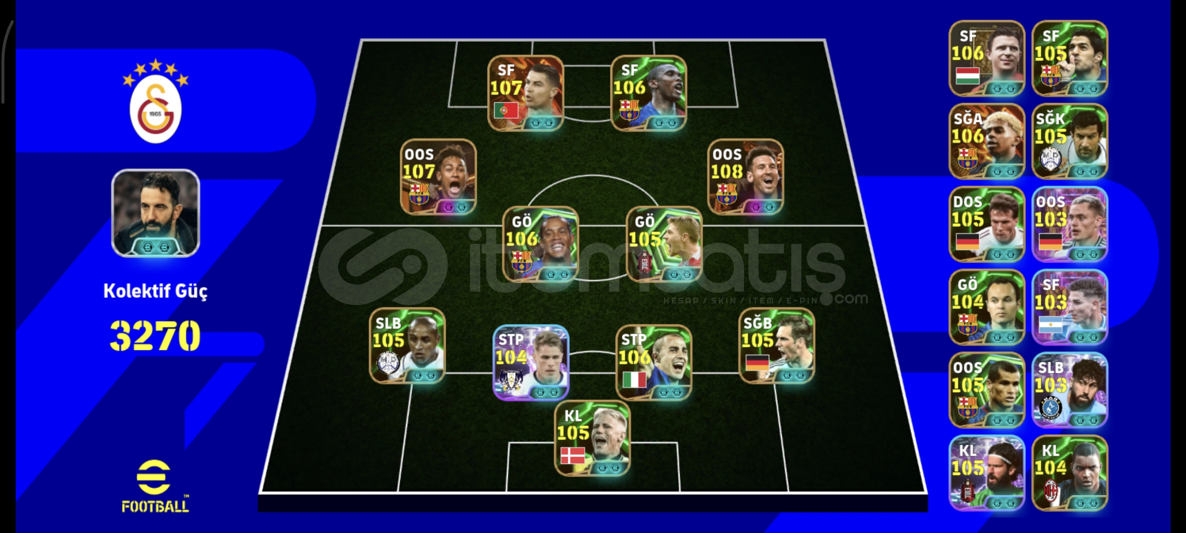 Kollektif güç 32703 Bombacı 7 Pike Yapan Ortacı2 Ağ Delen Kafacı2 Yer Füzesi (yeni nadir nitelik) Oyunun En iyileri 108 Messi 108 Ronaldo 107 Neymar 106 Ronaldinho Yamal, İniesta, Carlos Lahm vb vb Hesap Say Say Bitmez Herşey Dolu hesap göründüğü gibi ne eksik ne fazlaParanızı boş hesaplara yatırmayım en iyi en uygun en güvenli hesaplar buradaʌ...