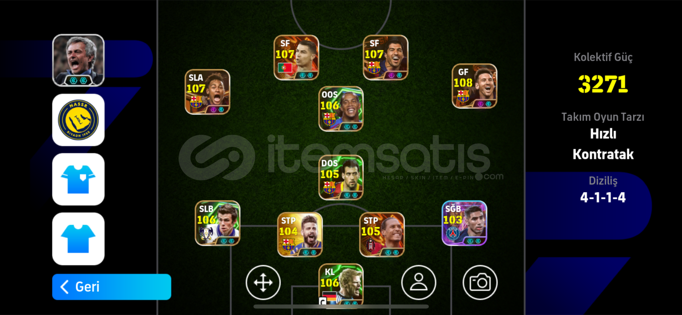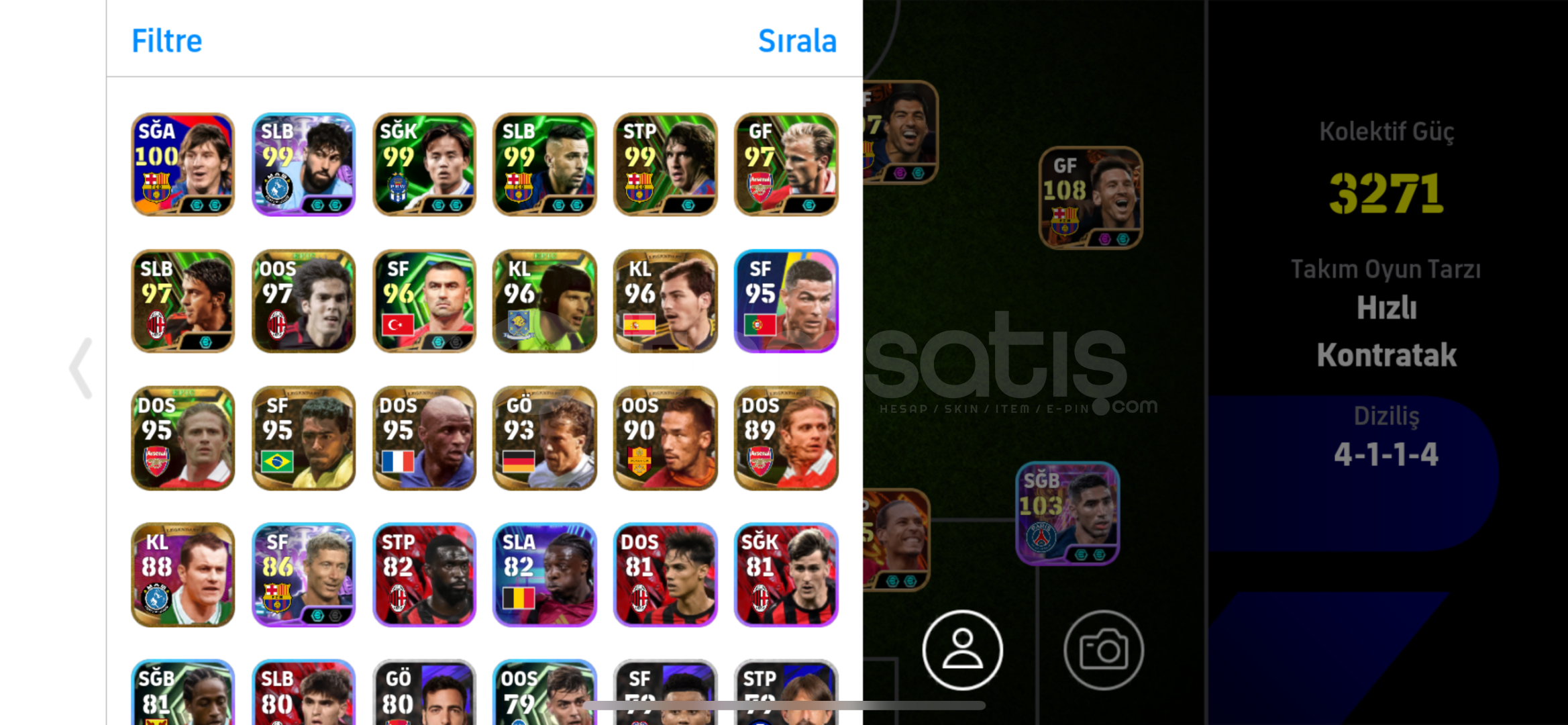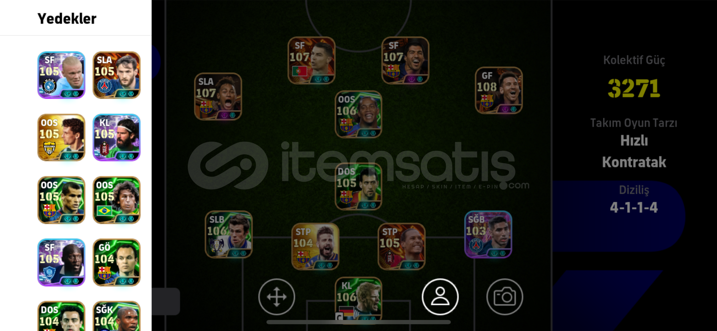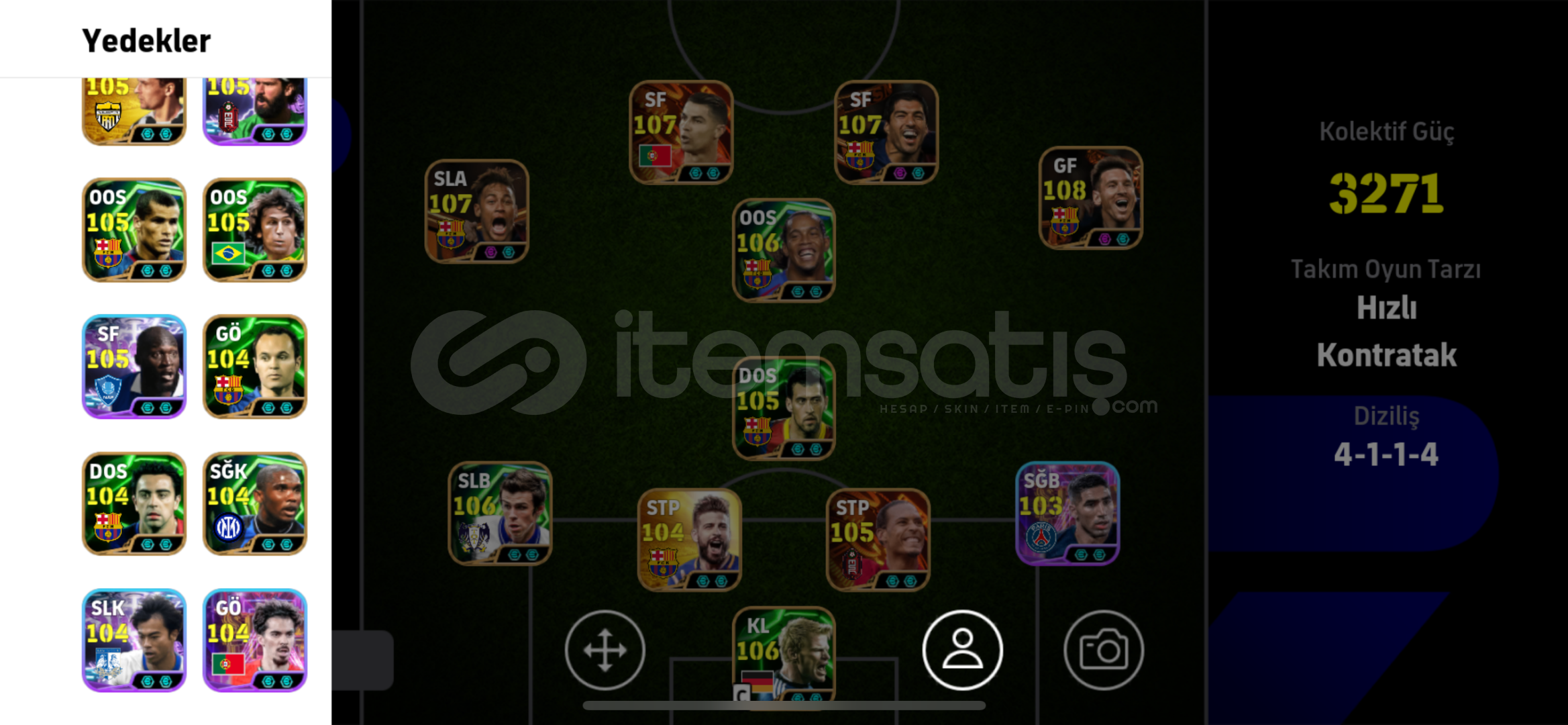 107 Neymar,107 Suarez,107 Ronaldo,108 Messi,106 Ronaldinho ve daha fazlası…Hesab İos tek bag android çift bagdır Playi kendim sildim kesin giriş yoktur.Otomatik teslimat açık aktif olmadan alabilirsiniz..