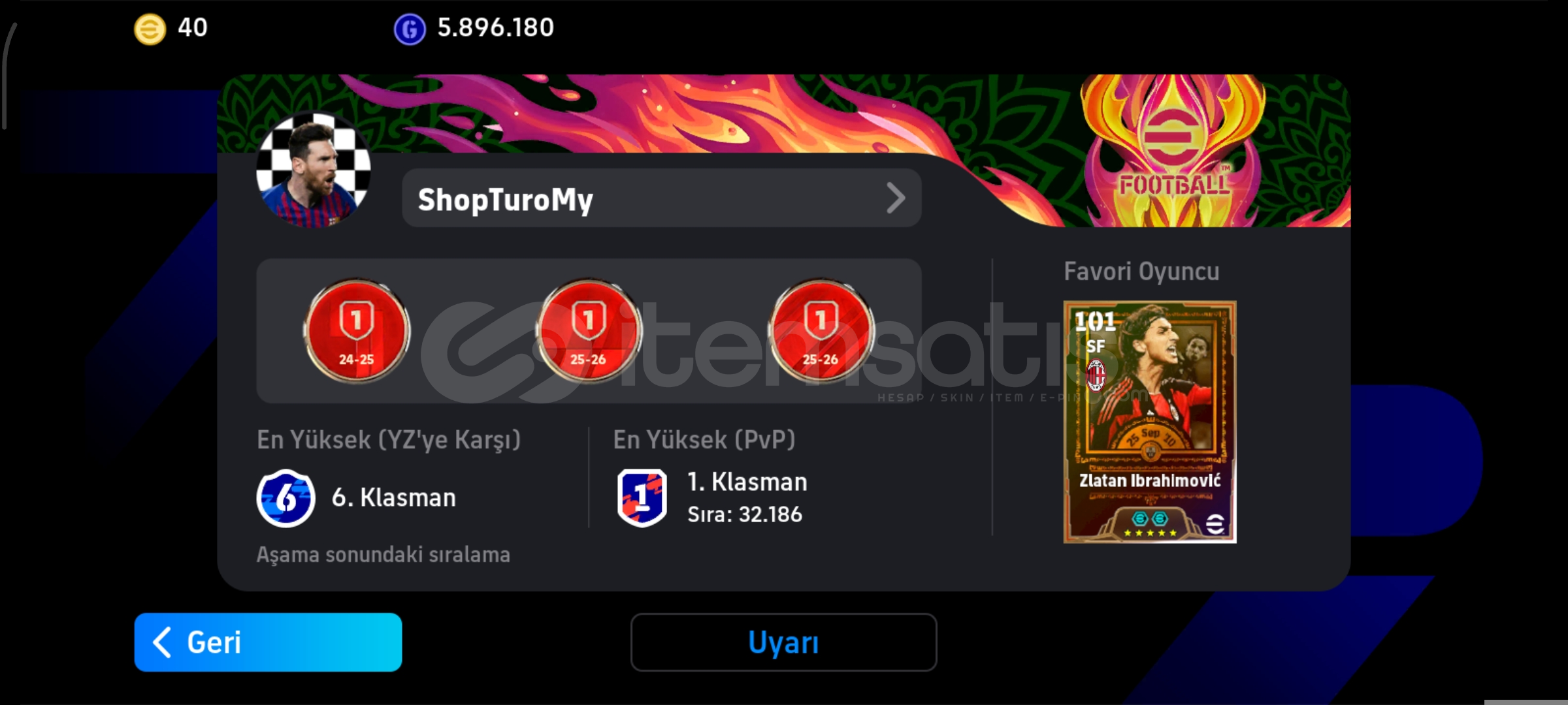 ⭐⭐⭐110 İBRAHİMOVİC KARTI ÇIKARTILMIŞTIR.⭐HESAP TEK BAĞDIR İOS ANDROİD KONTROL EDİLMİŞTİR.⭐EKSİ MYCLUB KESİNLİKLE YOKTUR.⭐HESAPTA AŞAĞIDA YAZAN ÖZELLİKLİ OYUNCULAR VARDIR ÇOK NADİR HESAP KAÇIRAN ÜZÜLÜR.⭐HESAPTA 7 TANE PARALI MENAJER VARDIR.⭐HESAP 4 KERE KLASMAN 1 OLMUŞTUR NORMAL HESAPLARDA BU ROZET YA Y...
