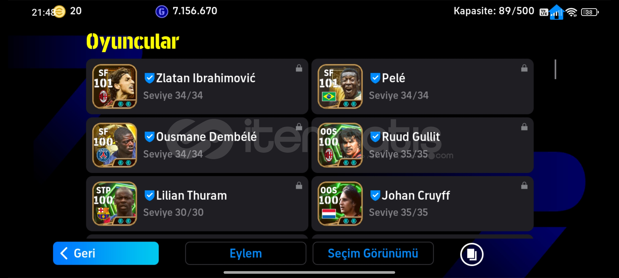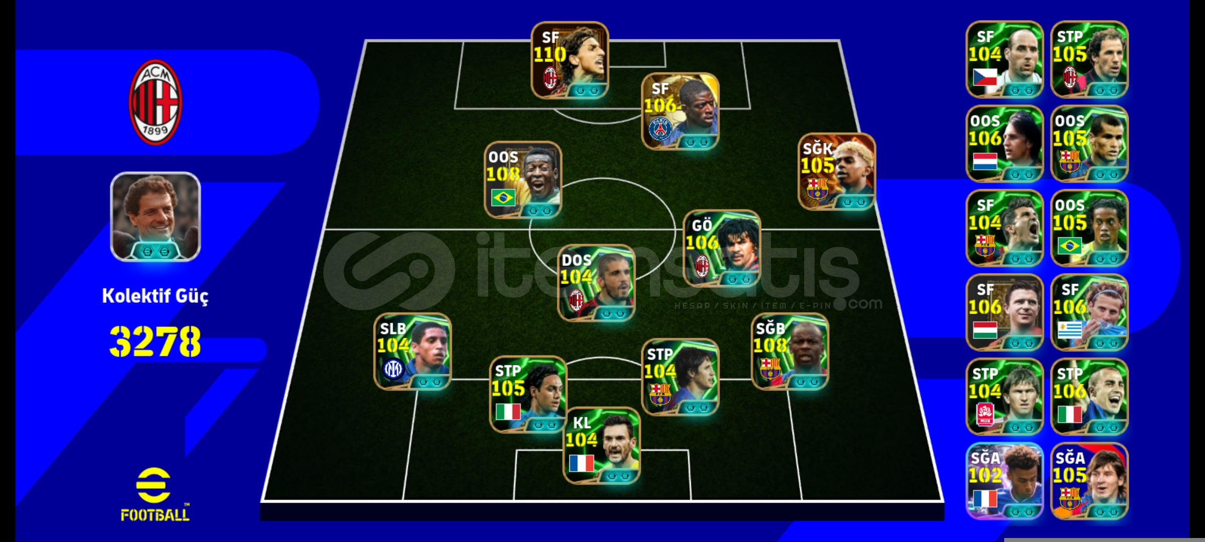 Ana hesabımdır hesap tek bağdır Tqkas kesinlikle kabul edilmez teklif yapmayın3278 kg 108 pele 110 zlatan İbrahimovic108 L. Thuram105 bombacı yamal104 bombacı villa 104 kafacı kollerHesapta bol bol epic vardır ana kadrosu çok sağlamdır özel ve yeni karakterler yeni skillere sahip karakter vardır hesabı oara ihtiyacım için satıyorum