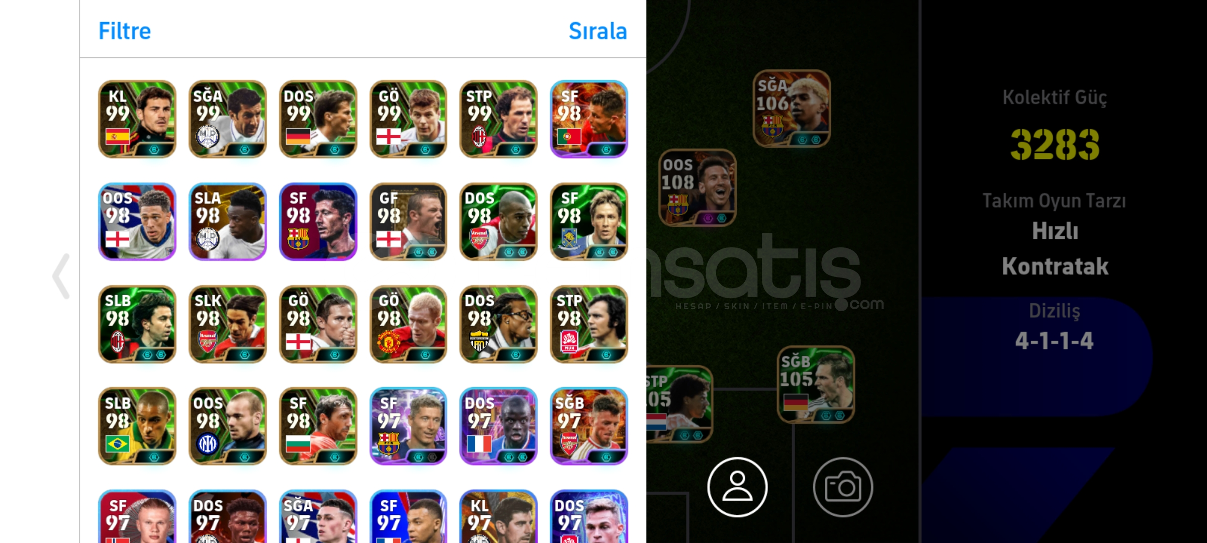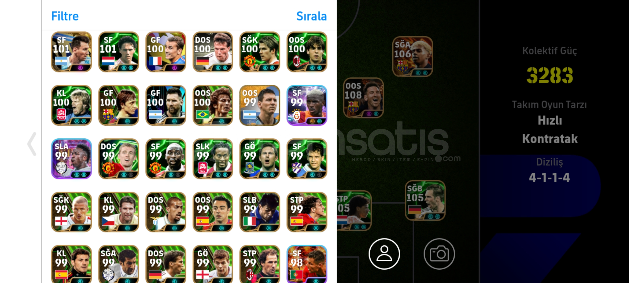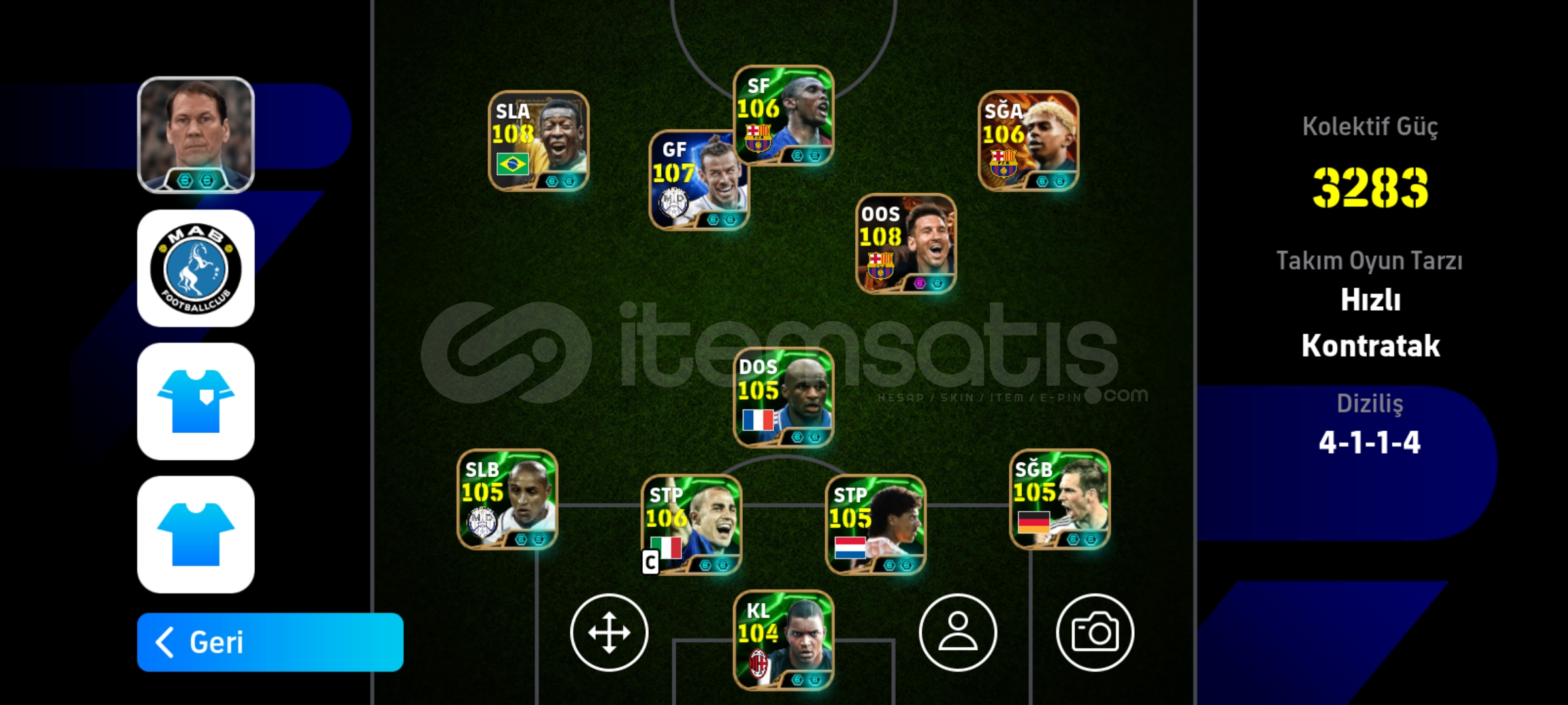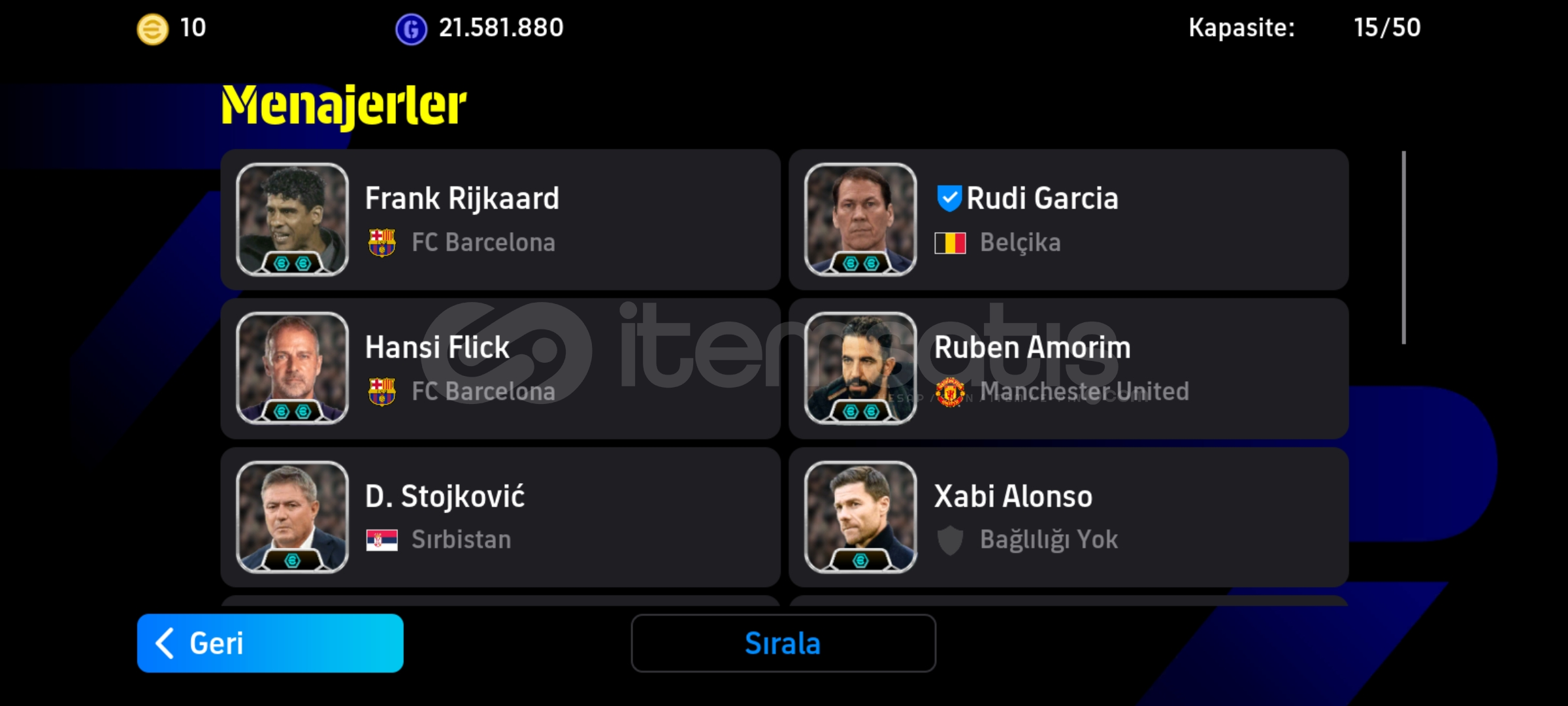 4 tane bombacı 5 tane ağ delen kafa vuruşu 6 tane pike yapan orta 6 tane dinamik depar2 tane öngörülü pas15 tane teknik direktör 328 tane oyuncu full+full rezervli 50-100k para harcanmıştır.