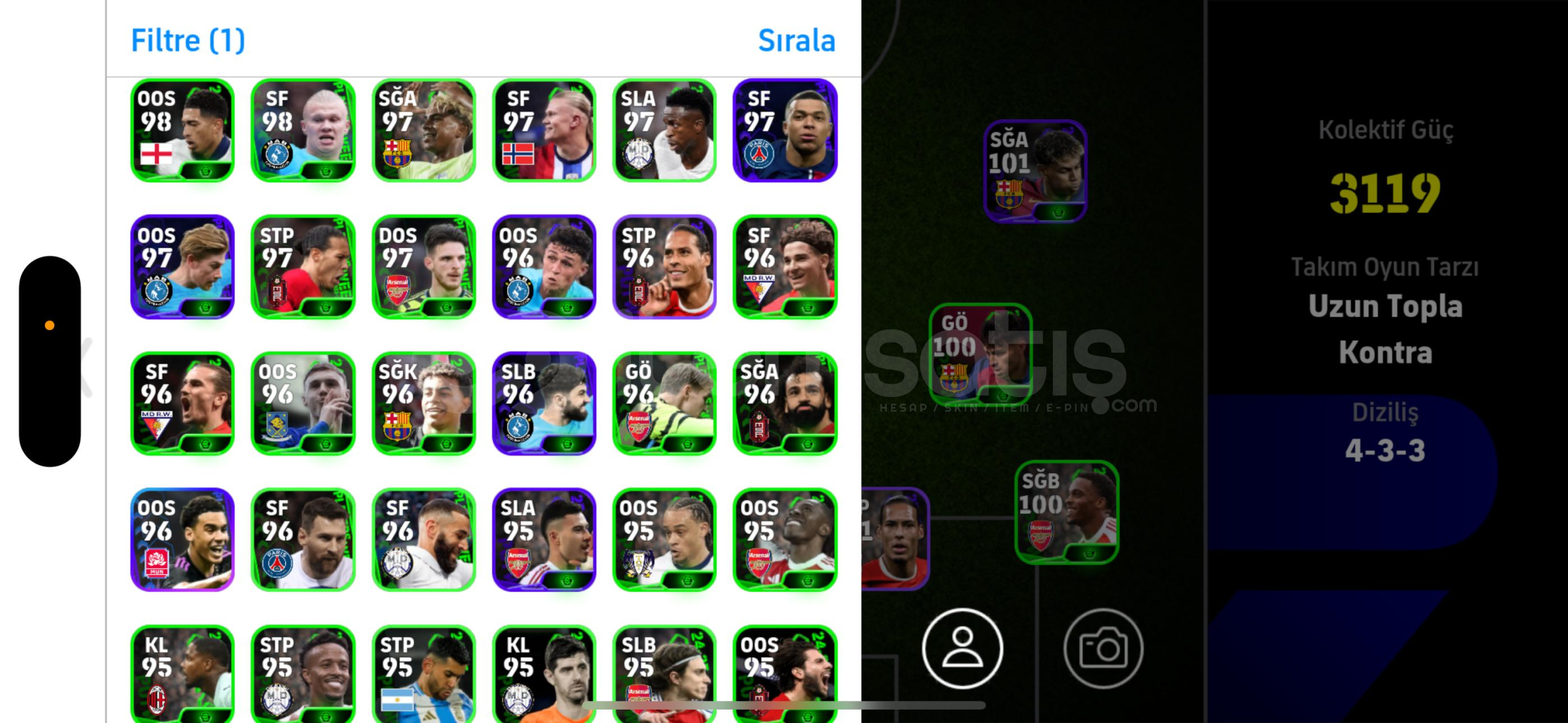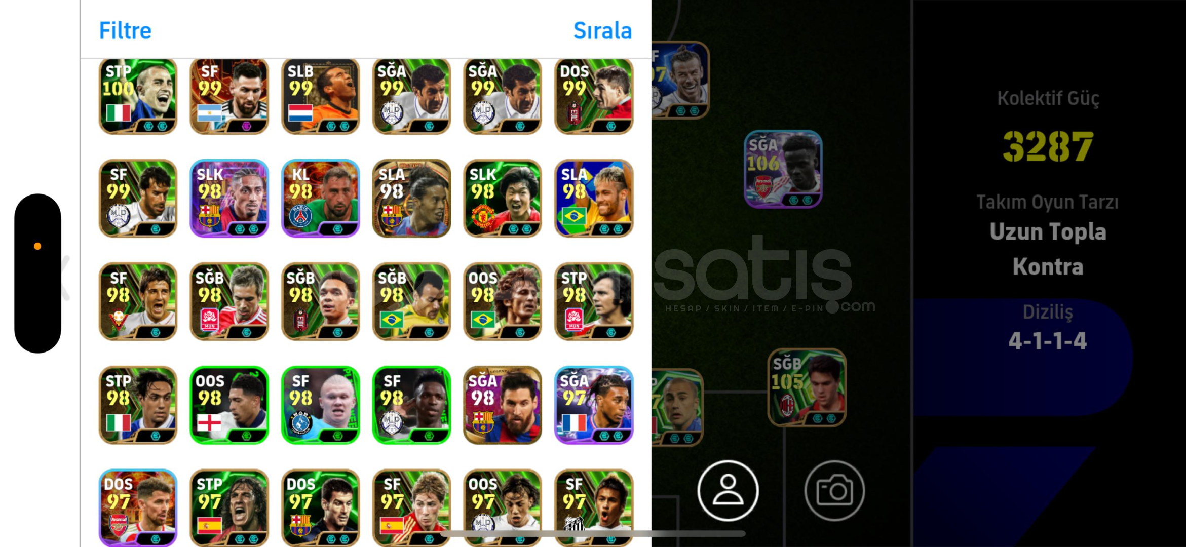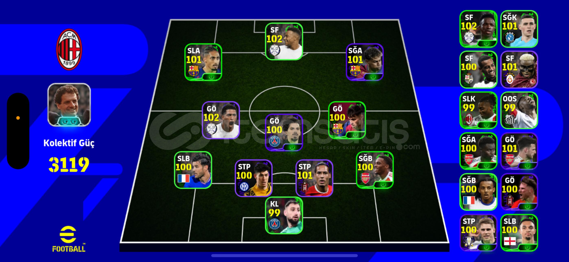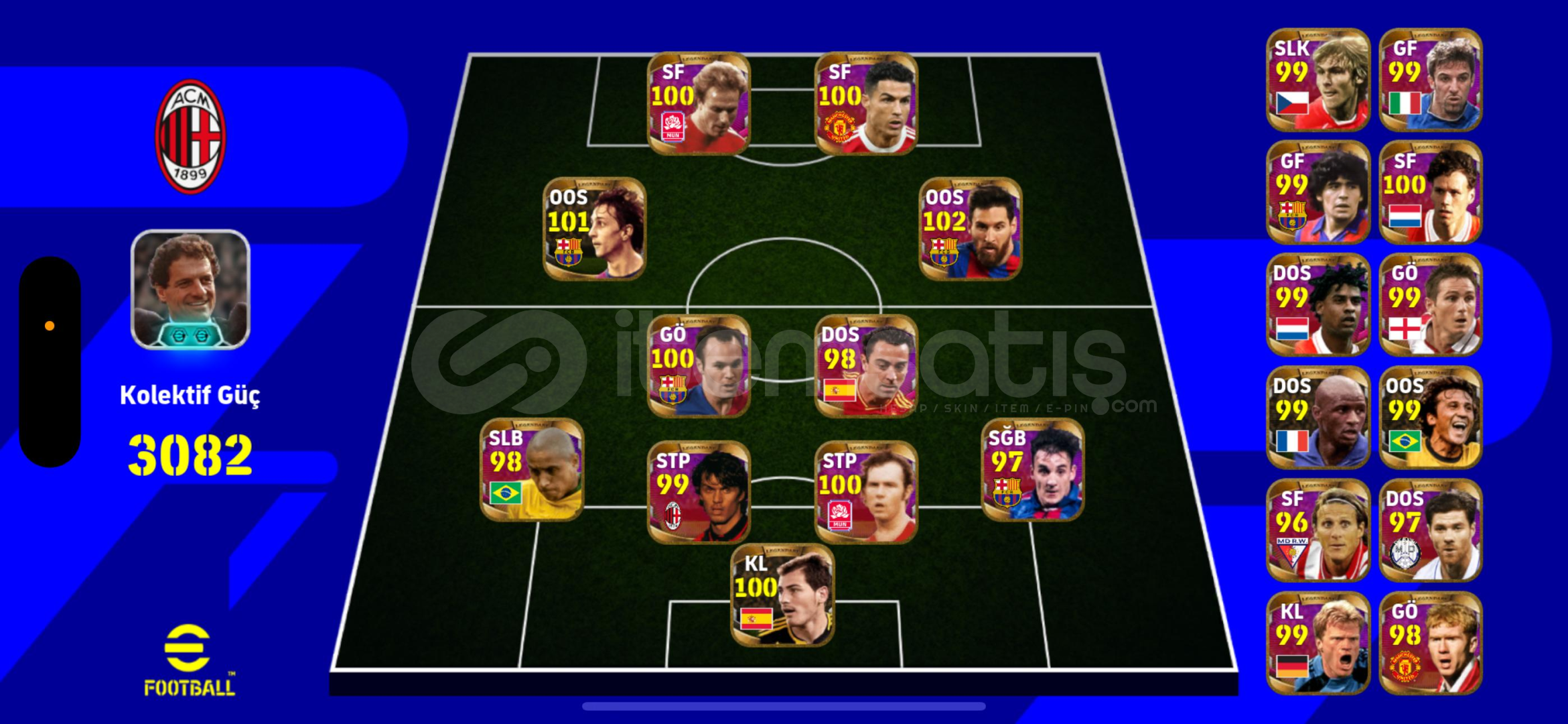 ​Bu hesap sadece yüksek bir KG puanına sahip değil, aynı zamanda oyunun en nadir dönemlerinden kalma kartlarla doludur. İster profesyonel liglerde yarışın, ister keyfine her türlü kadro varyasyonunu (Efsaneler, Full Takım vb.) kurun; bu hesap tüm ihtiyaçlarınızı fazlasıyla karşılar.