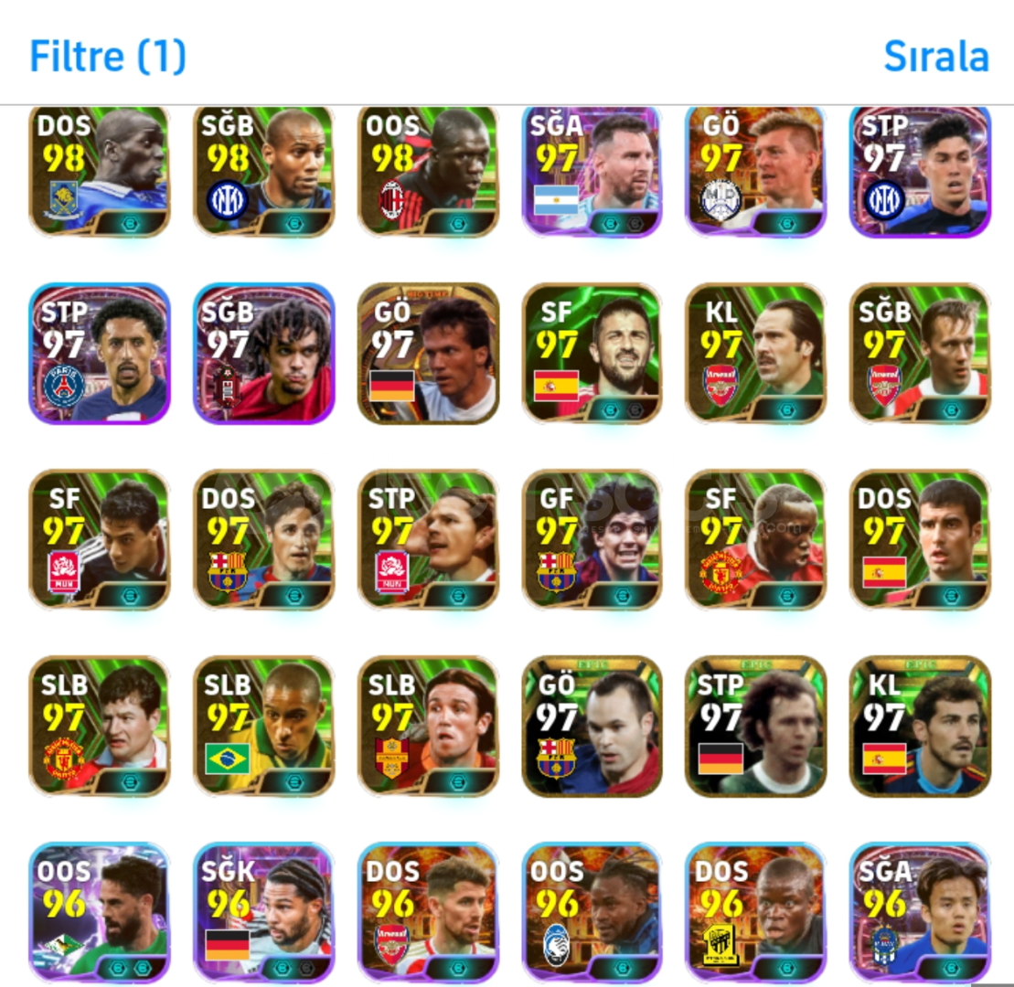 MAX KG 3290+4 BİG TİME MESSİ100+ EPİC39 SHOW TİME20+ BİG TİME5M GP8 ÖZEL MENAJER20+FORMA180+ POTW, ÖZEL KARTHER OYUN TARZINA UYGUN MEVKİSİNİN EN İYİ OYUNCULARINDAN OLUŞAN KADROLAR VARDIR.HESABI GERÇEK DEĞERİNİN YAPTIRDIKLARIMIN 10/1'İ FİYATINA SATIYORUM YİNEDE PAZARLIK VARDIR.HESABIN KALİTESİ ORTADADIR HER POZİSYONDA MEVKİSİNİN EN BABA EN SAĞLAM TOPCU...