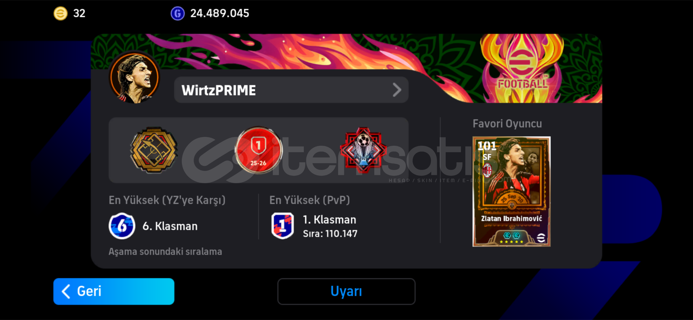 ibra pakedi fullenmiştirTR DE NADİR 30WIN ROZETİ 🔥Piyasasında EFSANEEmek hesabıTek Bağ+10 1.klasman rozetiGöründüğü gibidirAlıcısına hayırlı olsun