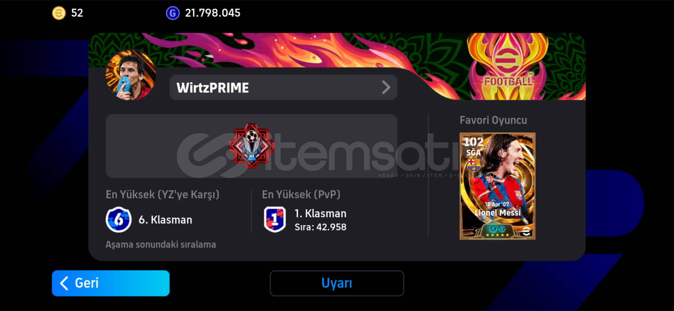 Mantıklı tekliflere açığımTR DE NADİR 30WIN Rozeti🔥+10 1. klasman rozeti 3310+ kgRekora gidebilecek potansiyelDolu rezervAlıcısına hayırlı olsun