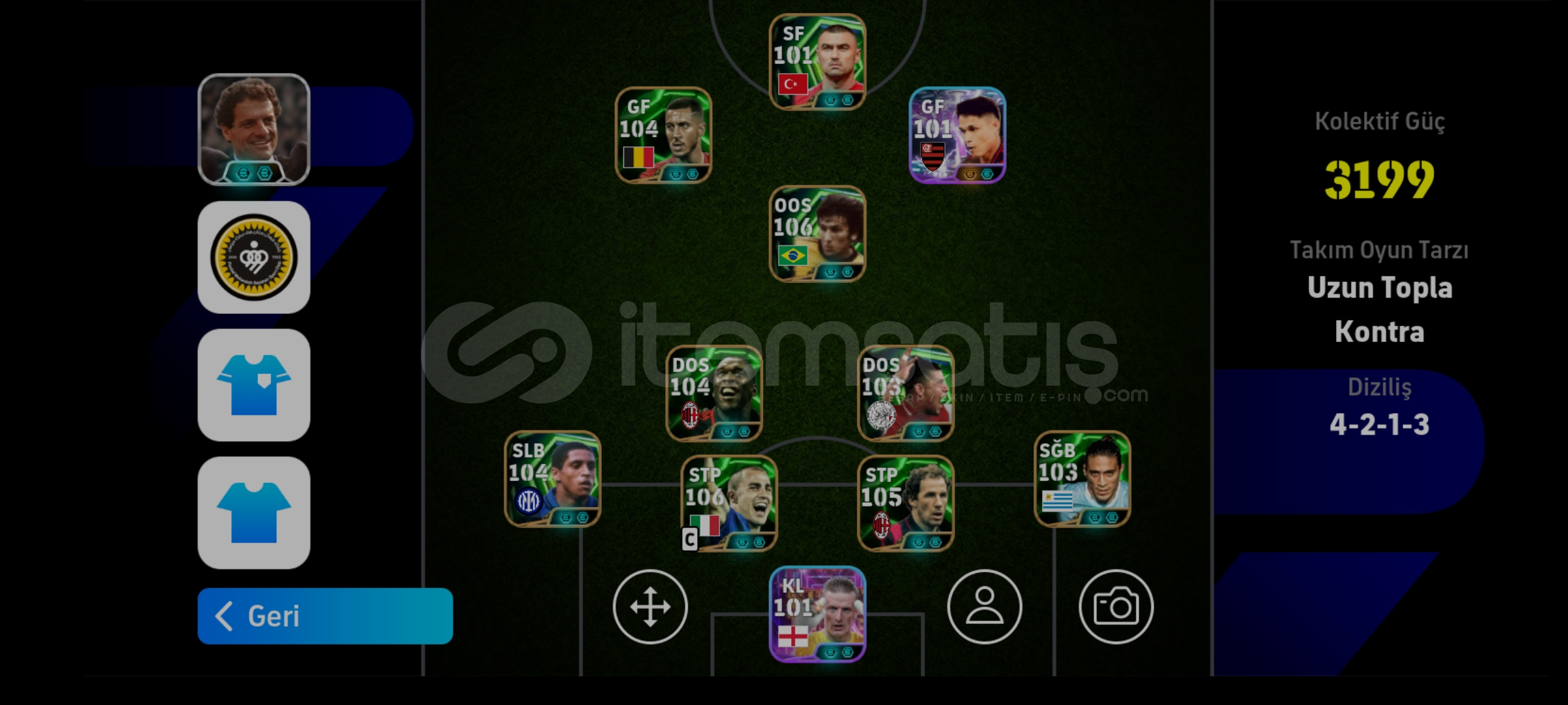 Hesapta öne çıkan bazı oyuncular:106 Zico106 Cannavaro 105 Baresi104 Hazard104 Roberto Carlos 104 Seedorf Hesap güzel ömürlük hesaptır tek bağdır alıcısına şimdiden hayırlı olsun