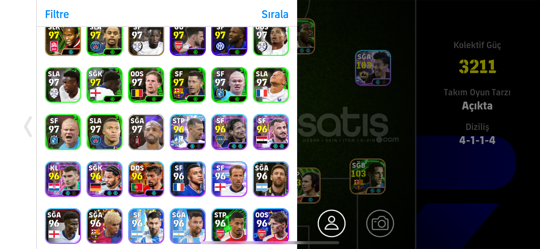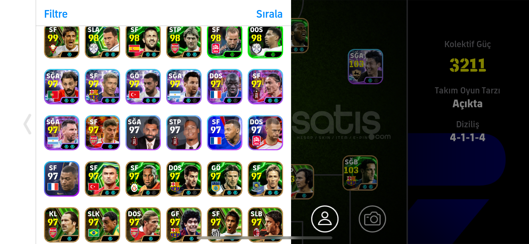 son,burak yılmaz, david villa, sane 106 drogba ve daha fazlası +3211kg ve hesapta 1150 mc bulunmaktadır!!!