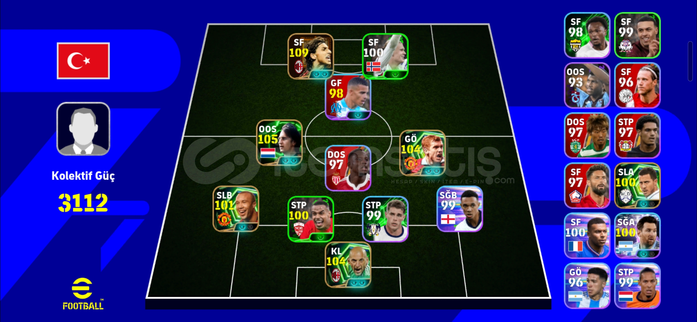 110 ibrahimovic 106 cruyff 105 scholes 105 abbiati başlangıç hesabı eksi mc yoktur