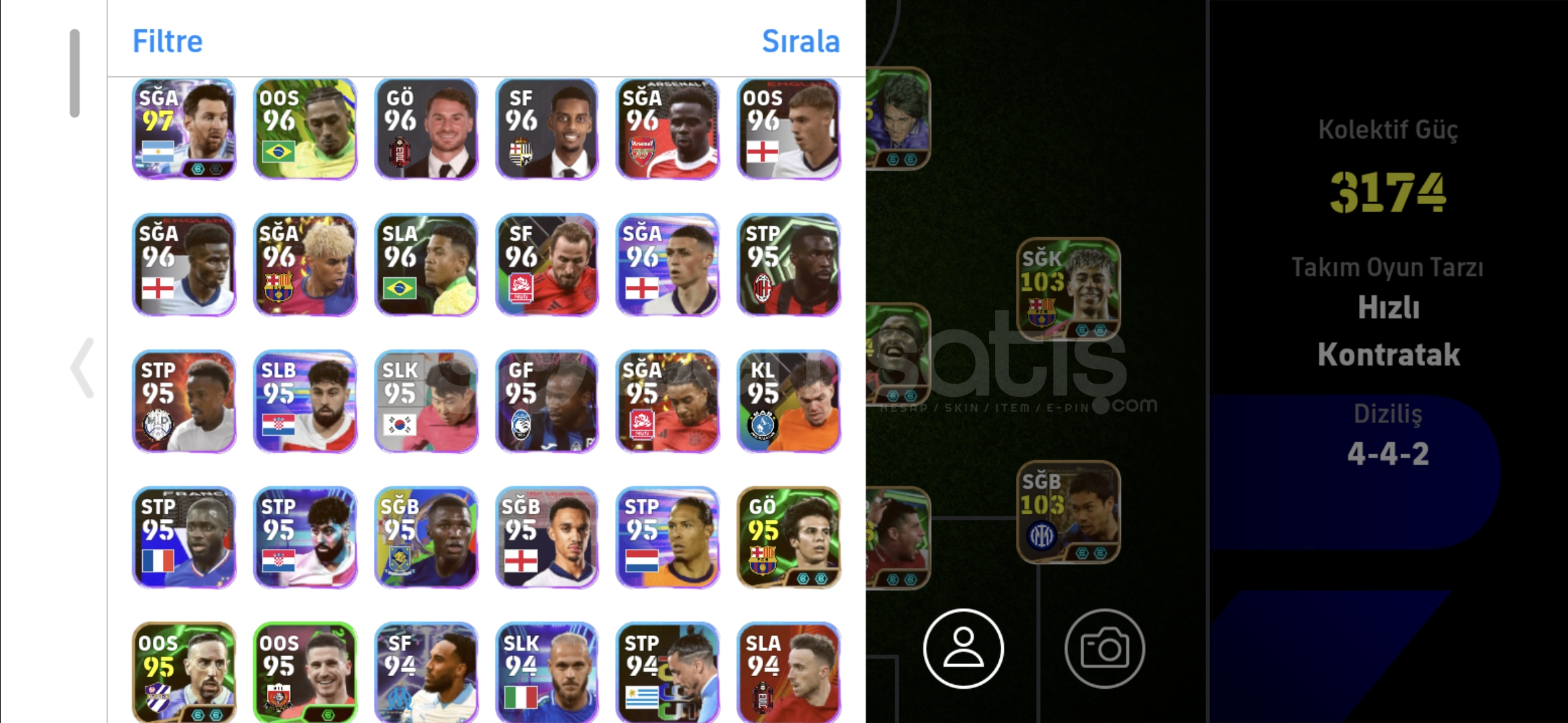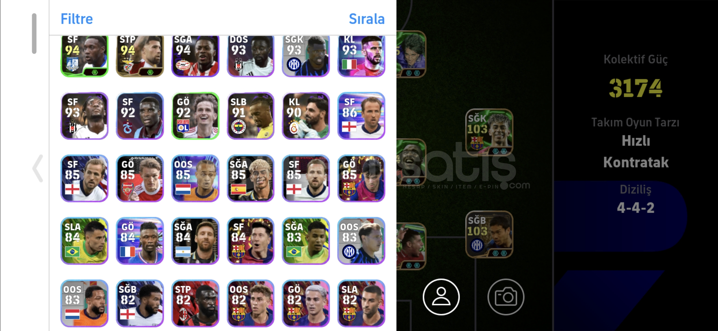 TEK BAĞ HESAP103 NAGATOMO103 YAMAL104 SEEDORF104 XABİ ALONSOVE DAHASIBOMBACI BURAK YILMAZ3 TANE MENEJER ÇİFT GÜÇLENDİRİCİLİ